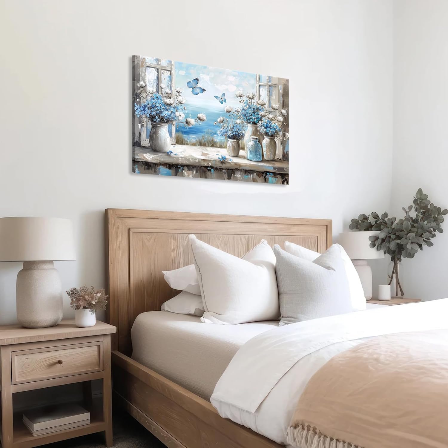 - Blue Coastal Wall Art:this wall art is available in two versatile sizes—12x16 inch and 16x24 inch—to fit small nooks or make bold statements. Featuring high - definition printing, every detail of the blue butterflies, cotton - like blooms, and coastal backdrop is vividly captured, ensuring long - lasting color vibrancy. Whether you want a subtle accent with the smaller size or a striking focal point with the larger one, our canvas decor adds an elegant touch to any space.