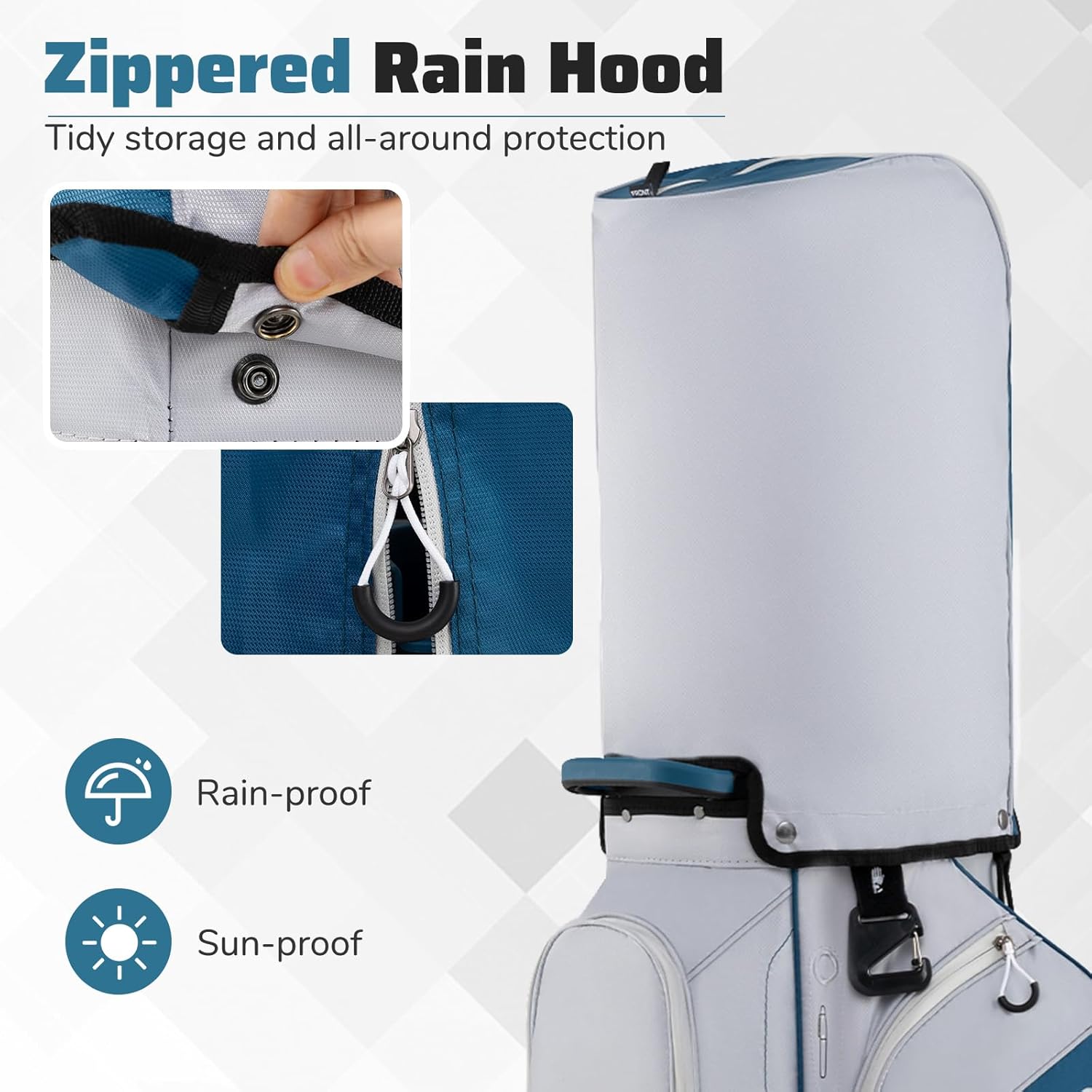- 【All Weather Protection】 This golf cart bag comes with a rain-proof and sun-proof zippered rain hood that can protect your clubs from the elements. Besides, the inclusion of the umbrella holder keeps you prepared during sudden rains.