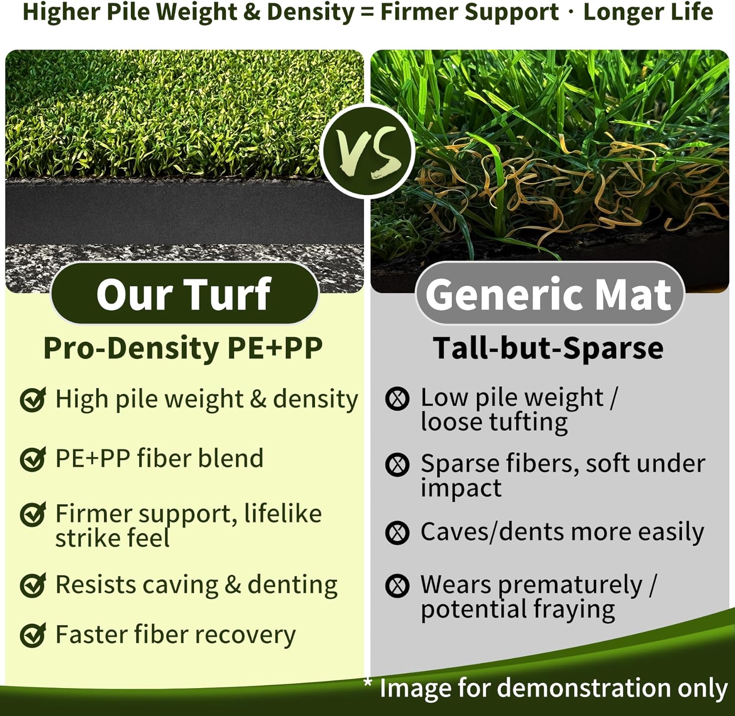 - Stronger Support, Longer Life: High-density, heavy-weight turf resists caving, denting, and early wear common to “tall-but-sparse” mats; unlike many golf hitting mats, this durable golf turf practice mat / golf turf mat is built for frequent use.