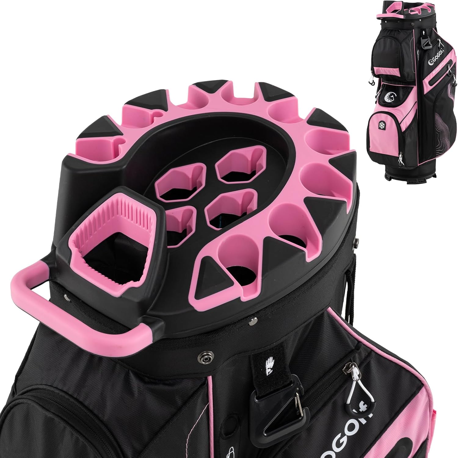 - 14-Way Divider Top: Featuring 14 way full-length dividers with 6 molded club locks, this golf cart bag ensures each club is securely held in place as well as prevents rattling and collisions. Please note that golf clubs are not included.