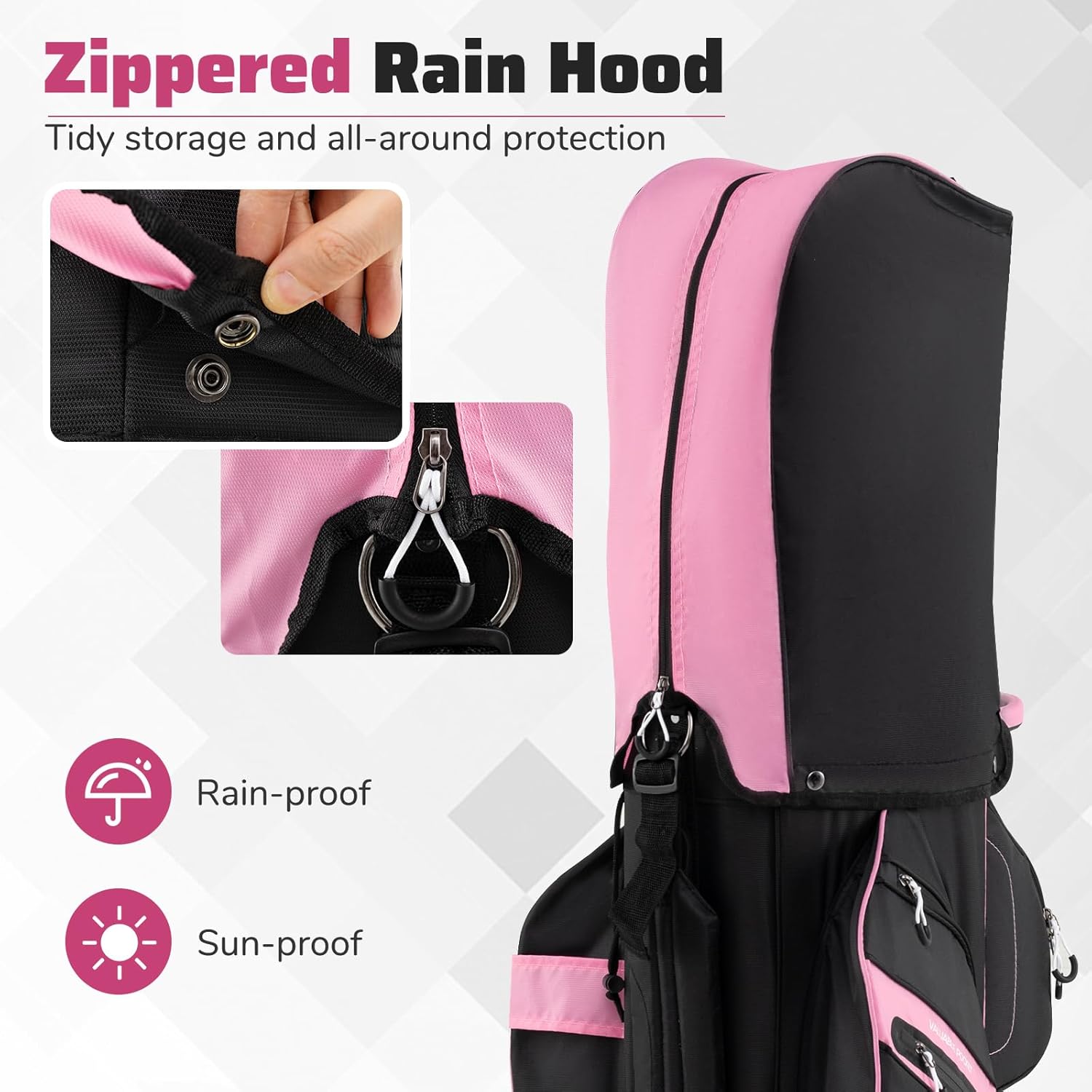 - Effortless Carrying: Equipped with an adjustable padded shoulder strap and multiple carrying handles, this lightweight golf cart bag allows you to easily transport your clubs and accessories around the course.