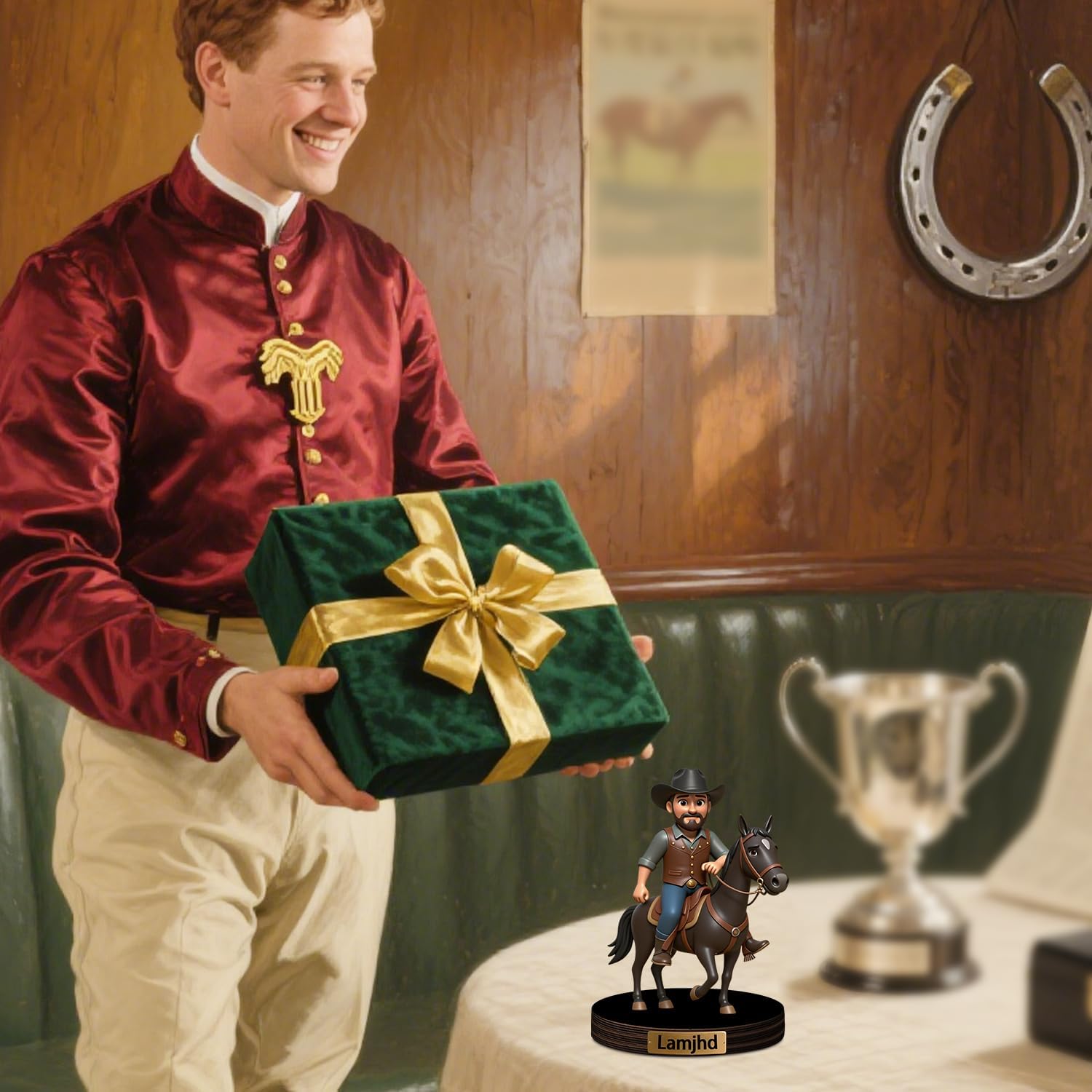 Personalized Horse Racing Cartoon Photo Sculpture Ornament Custom Name 2D Acrylic Horse Rider Photo Figurine Desk Decor Gift for Men Women Family Race Horses Lover Birthday Xmas (Style 6)