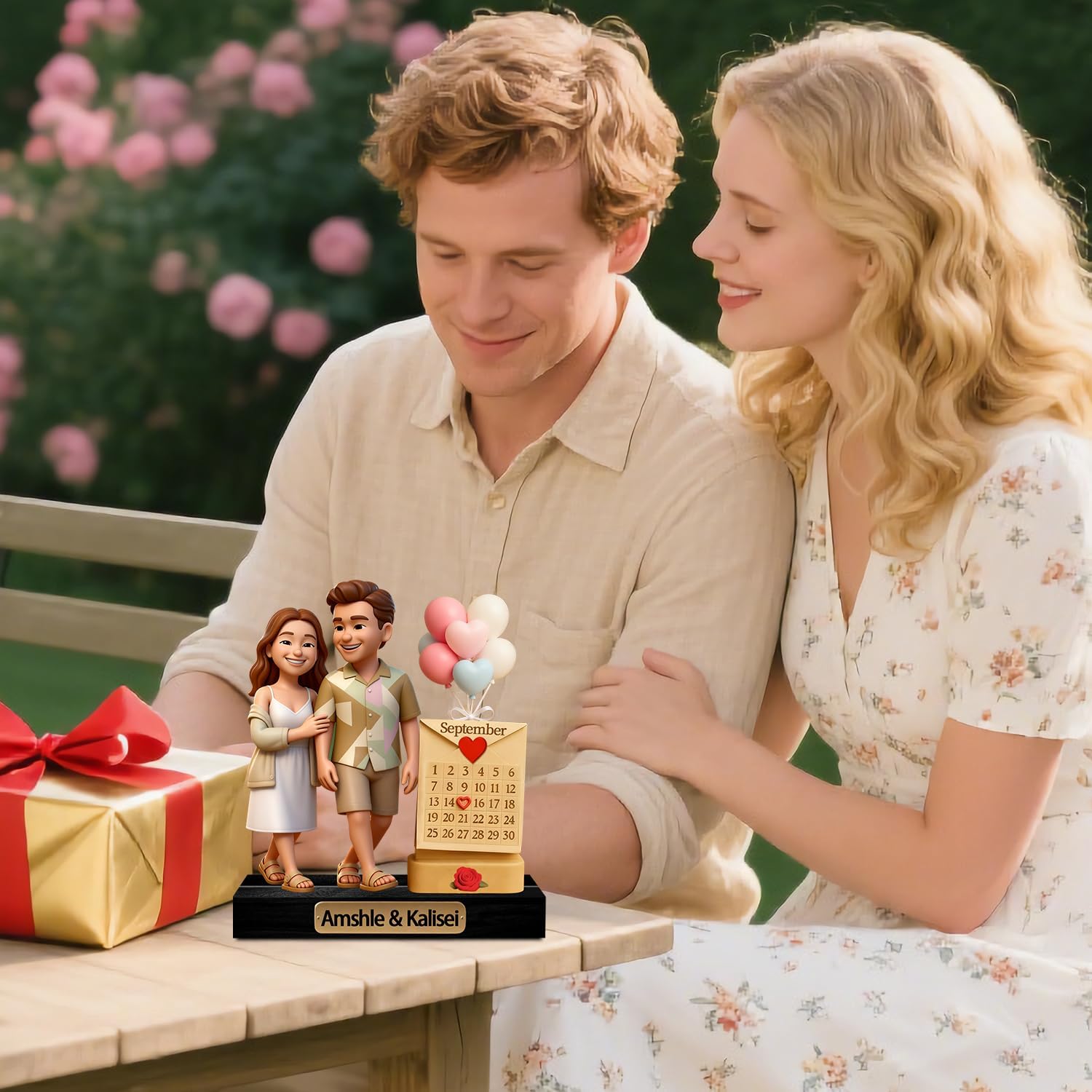 Personalized Couple Cartoon Photo Sculpture Ornament Custom Name Date 2D Acrylic Cartoon Style Figurine Desk Decor Gift for Couple Valentine's Day Xmas Anniversary (Style 16)