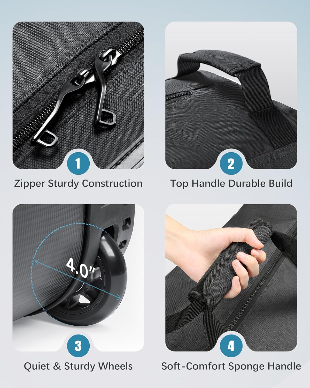 - THOUGHTFUL DESIGN — No need to worry about zippers breaking after a few uses or the golf cart bag stretching out; it features smooth zippers and reinforced stitching. The durable top handle supports heavy loads, while the quiet, sturdy wheels let you pull it effortlessly, and the soft, comfortable sponge handle keeps your hands pain-free.