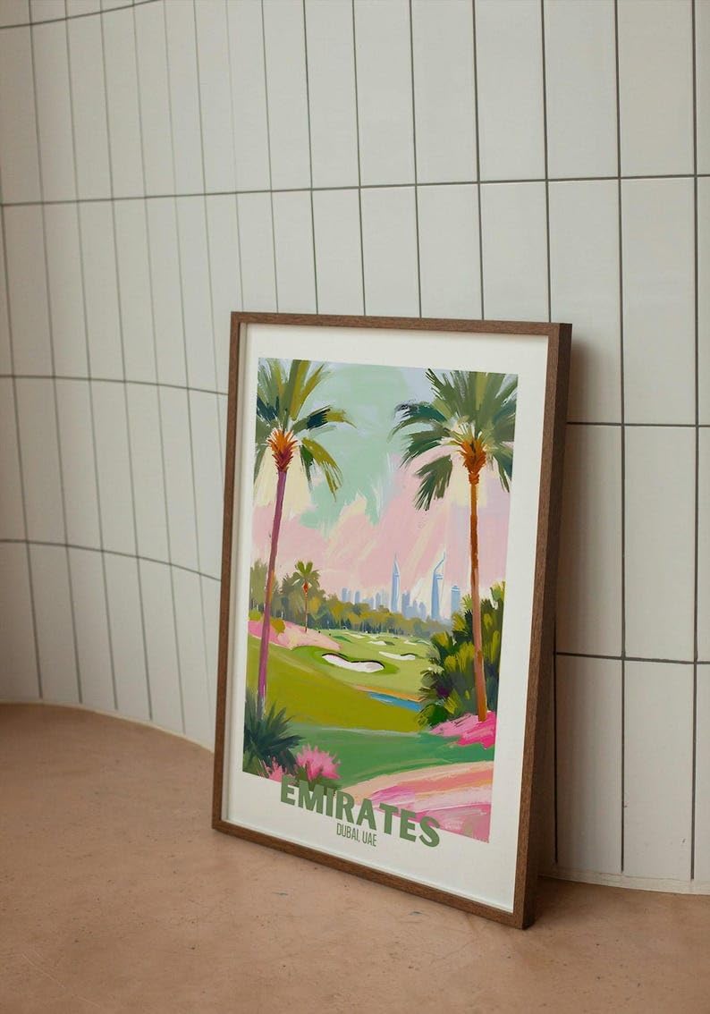 Golf Wall Art Print, Emirates Dubai UAE Golf Course Poster, Colorful Impasto Painting, Modern Sports Decor, International Artwork, for Golf Enthusiasts (Unframed) (16x24)