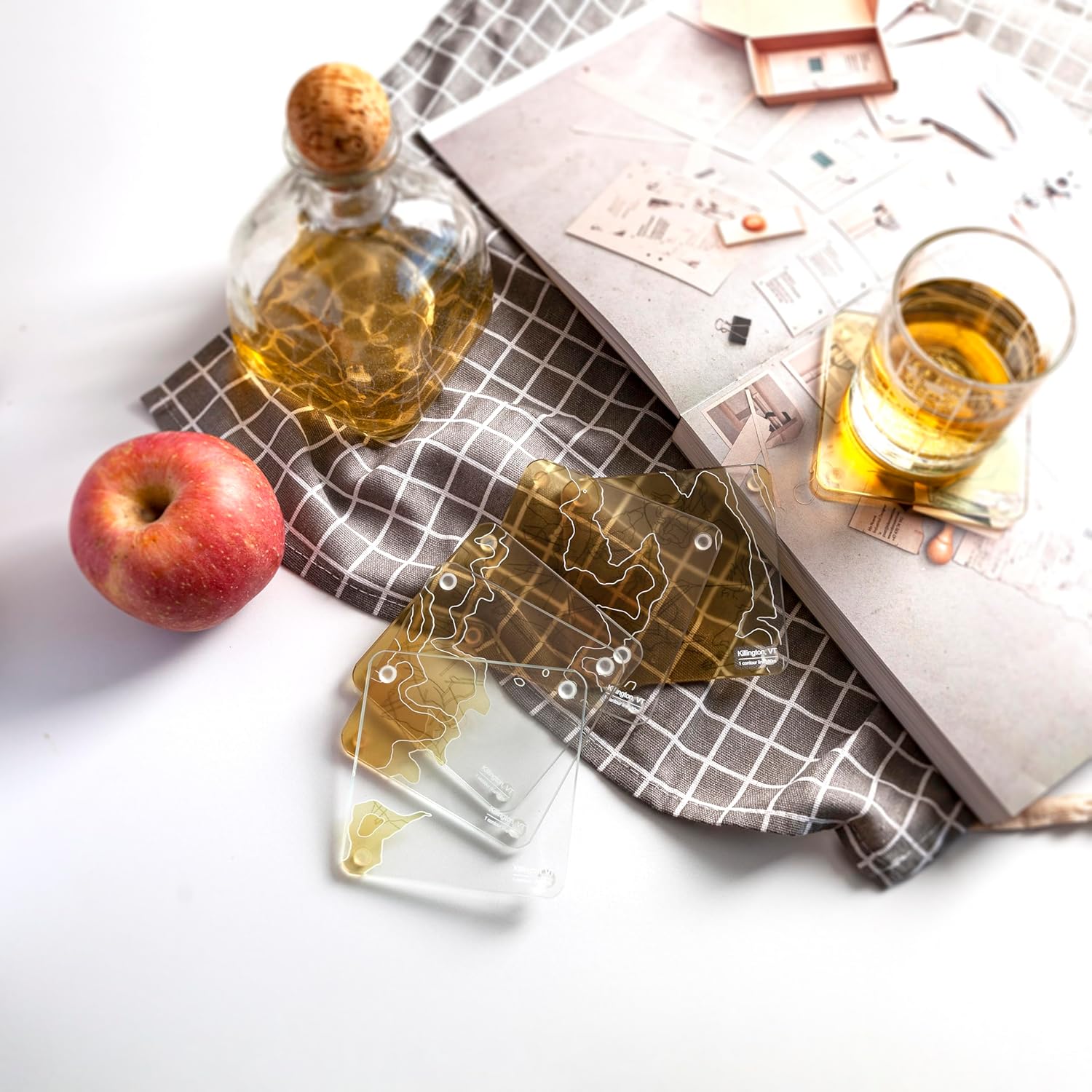 - Unique Gift:Our square coaster set matches all kinds of tables and are great gifts for travel, skiing, mountaineering, camping and hiking enthusiasts. Suitable for any occasion. Such as family kitchen, dining tables, coffee tables, restaurants, hotel or business office.