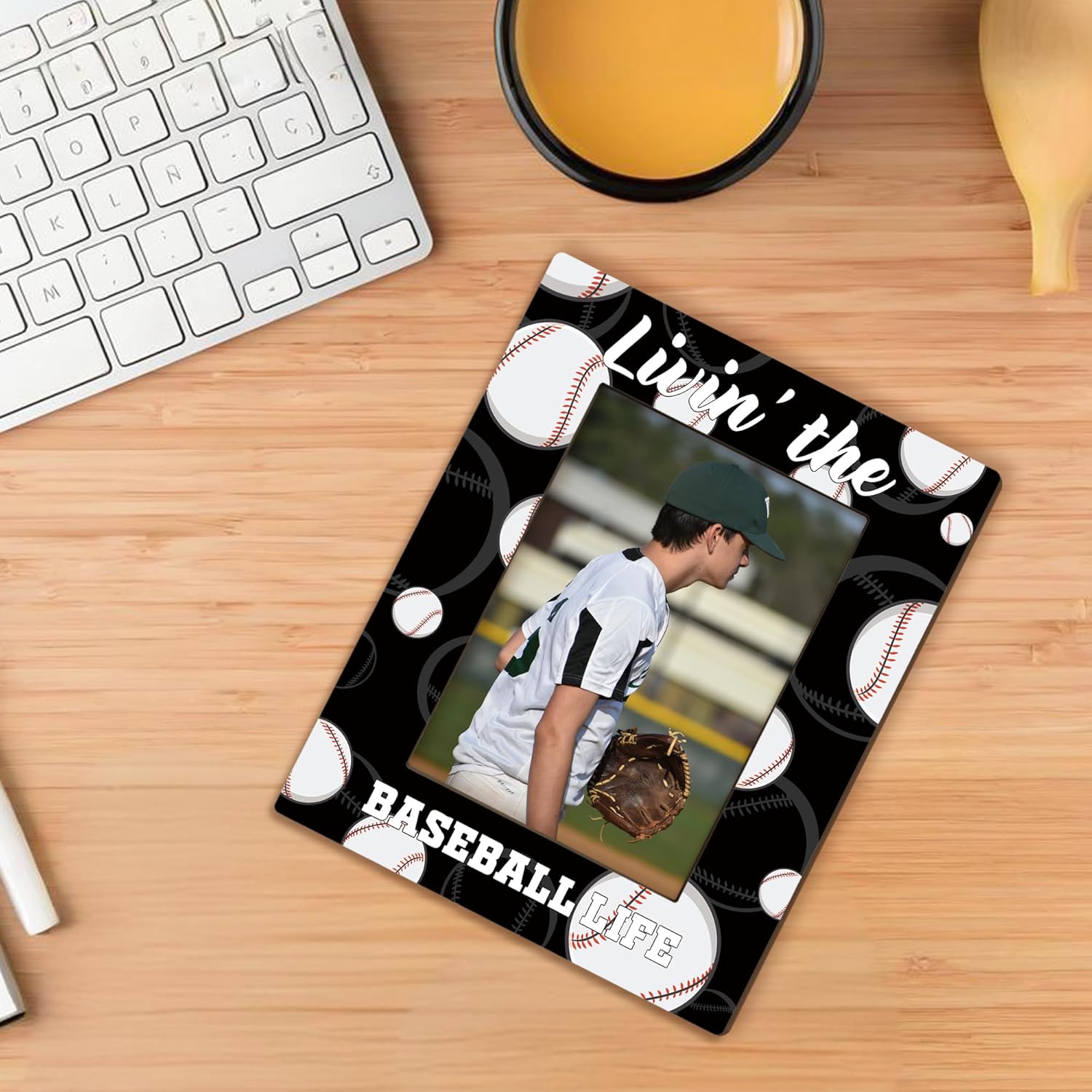 Baseball Picture Frame 5x7, Base Ball Lover Gifts Photo Frame, Base Ball Gifts for Men Boys BaseballPlayers, Livin'the Baseball Life Sport Wooden Picture Photo Frames for Desk Home Room Decor