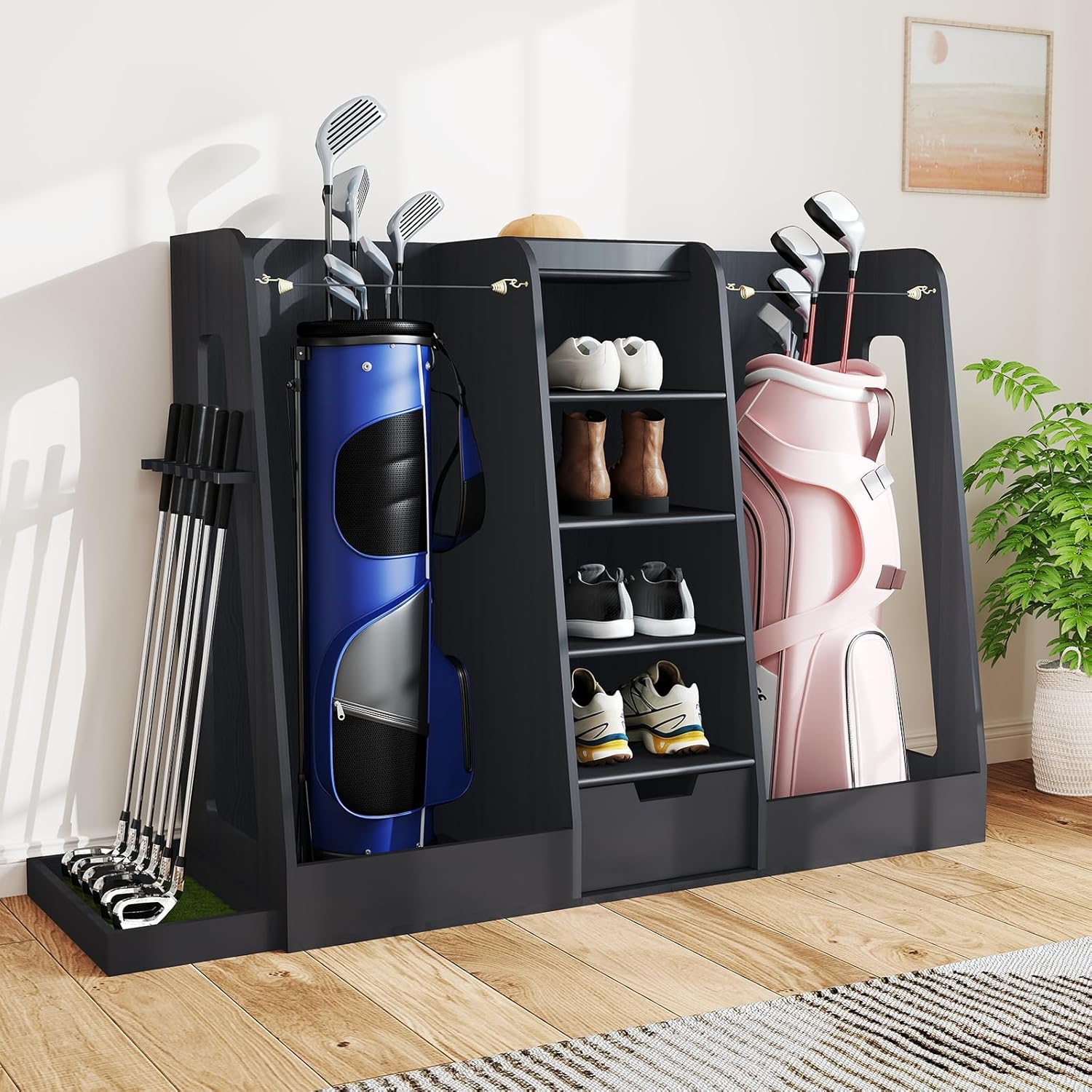 - 【Versatile for Multiple Scenarios】This golf organizer rack is ideal for a variety of spaces, including living rooms, garages, golf clubs, golf simulators, offices, basements, storage rooms, and backyards. Its versatile design blends seamlessly into both home and professional environments, offering convenient and organized storage for your golf equipment