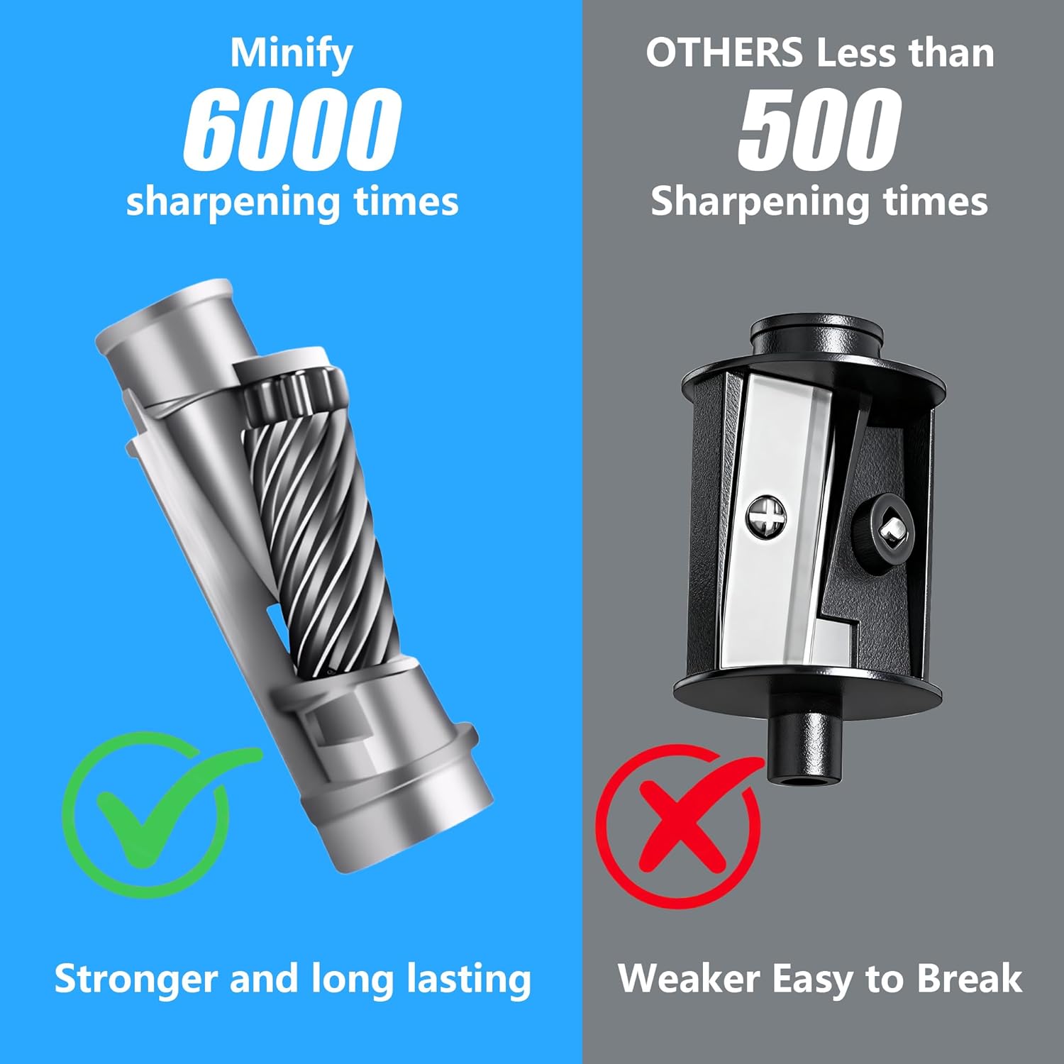 - 6000 Sharpening Times: This heavy-duty pencil sharpener with strong and durable helical blade can sharpen over 6000 times. Ideal for teachers, students, children, artists, and anyone who needs a powerful pencil sharpener