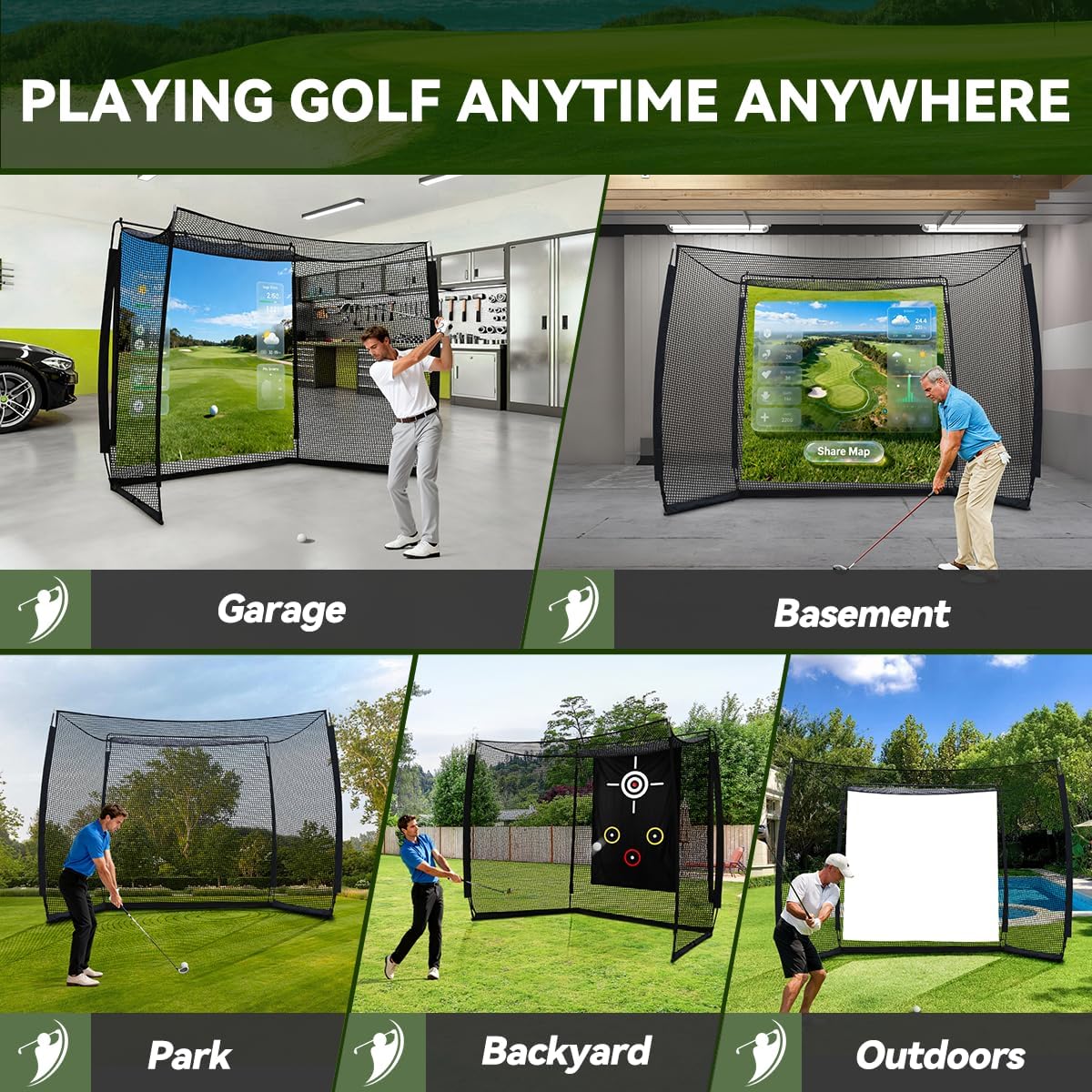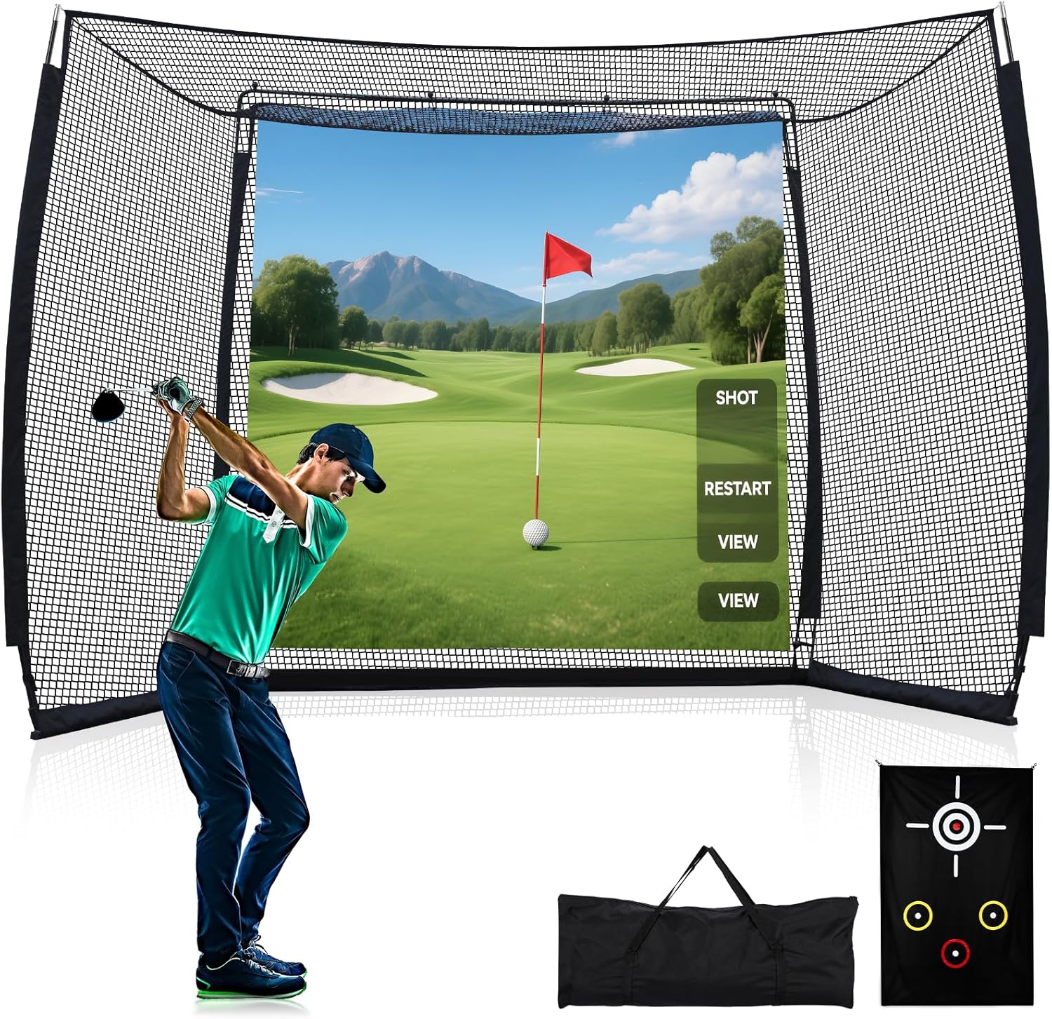 - Multifunctional Design: This golf net features a high-definition impact screen and target cloth to accommodate diverse practice needs. Set it up in your backyard for daily swing training, or pair it with simulators or projectors (not included) to enjoy immersive, real-course experience right at home.