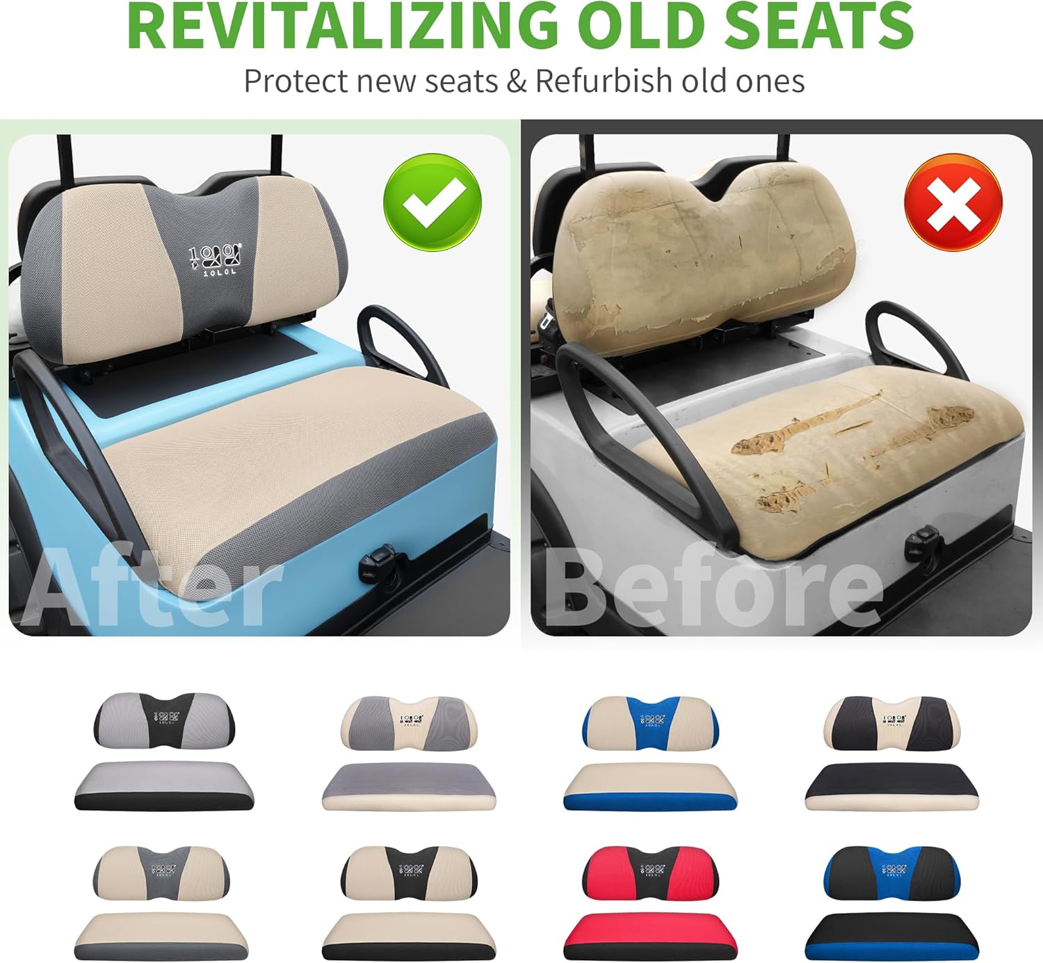 - Seat Protection & Style Upgrade: The golf cart bench seat cover protects original vinyl seats from UV rays, dirt, and wear and maintain resale value by preserving original seats; while refreshing your golf cart's look with a stylish dual-color design.