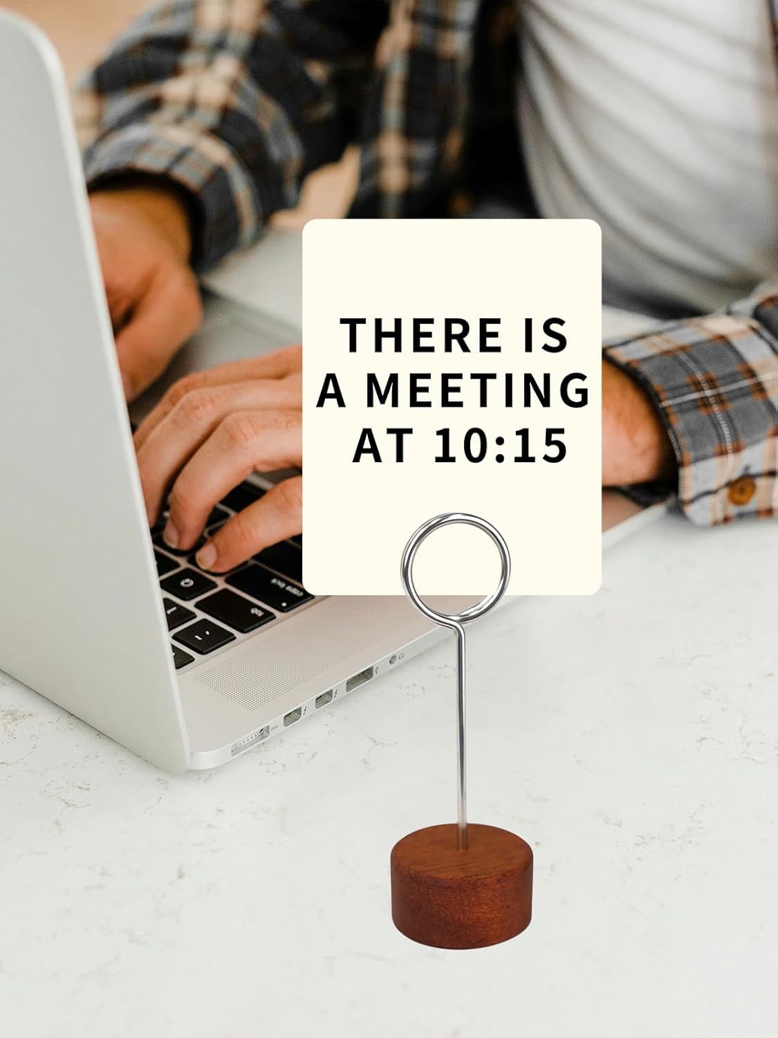 - Wood Base with Metal Clip - Features a sturdy wood base paired with a durable metal clip for a rustic yet elegant aesthetic