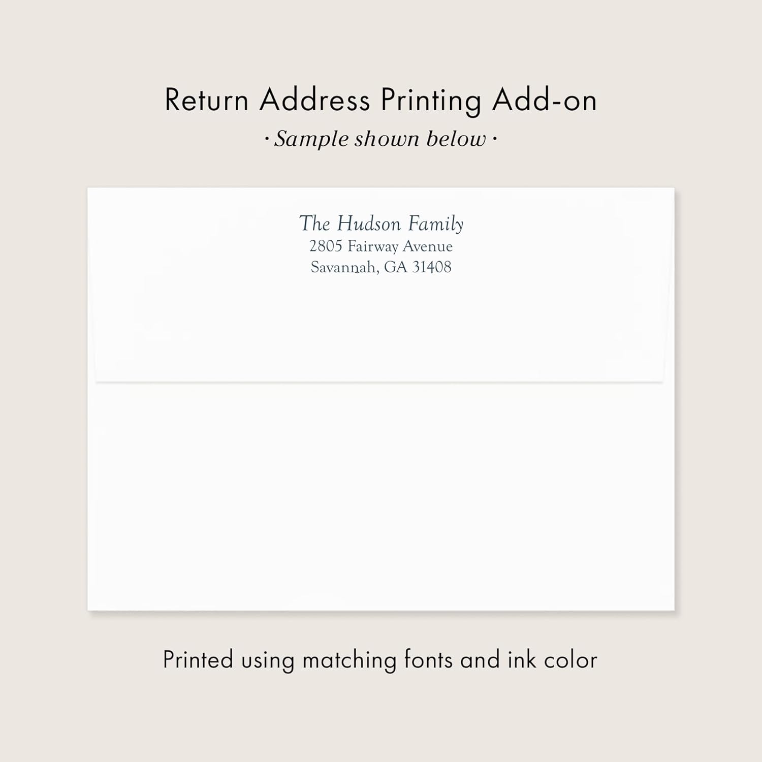 - Personalize It: Select your desired number of cards (minimum of 10) in the "Customize Now" section, and enter your personalization details. Return address printing on the back flap of the envelope is available as an optional add-on.