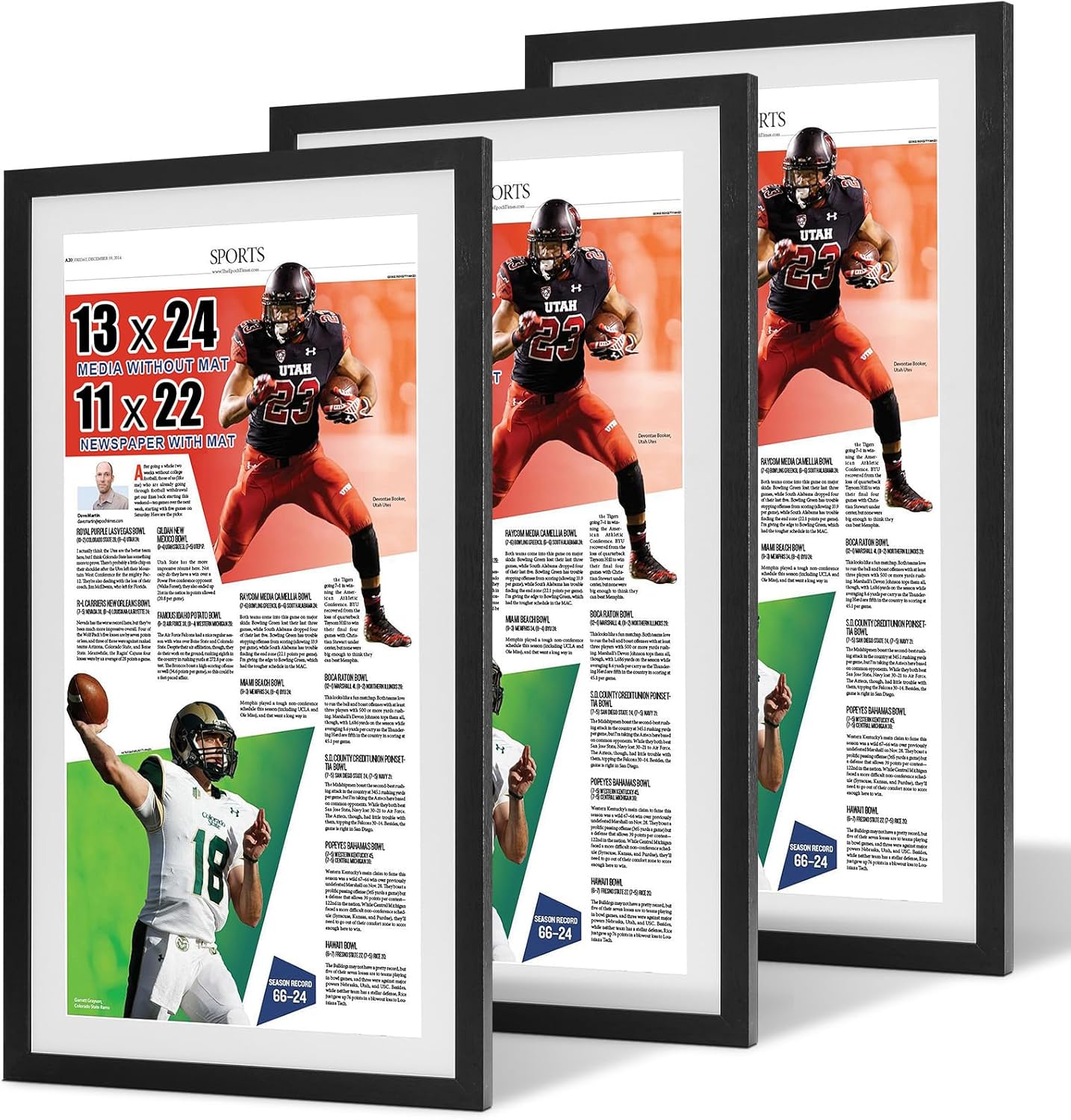 - Showcase Your Newspaper Collection - The JupDec Newspaper Display Frame beautifully showcases newspapers from 10.51" × 21.50" up to 12.99" × 23.98". Whether it’s a historic front page, a championship headline, or a personal milestone story, this newspaper wall frame transforms your newspaper into a striking wall‑ready centerpiece, preserving the moments that matter most.