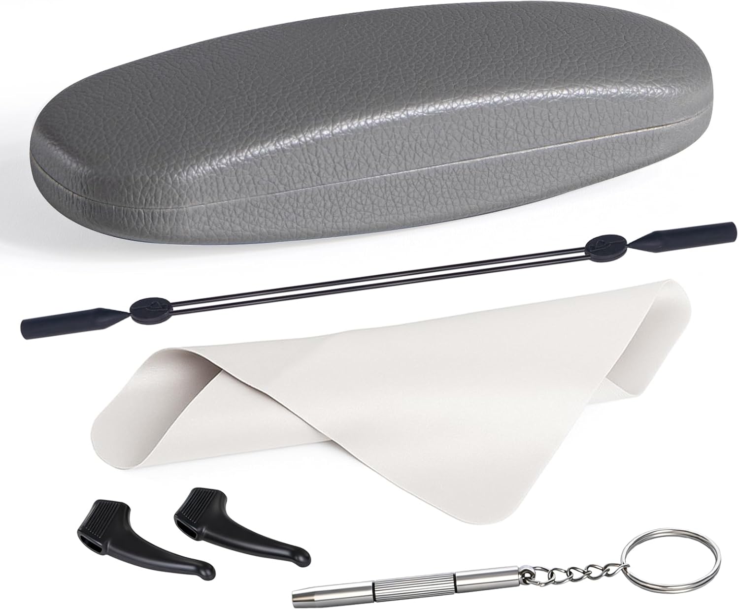 - Combination Device: Glasses necessary accessories includes 1 pack hard shell glasses case, 1 pcs of glasses cleaning cloth, 1 pcs anti-slip adjustable glasses strap, 1 pair small silicone ear grips hook, 1 pack mini screwdriver, these glasses accessories will bring you a surprising experience