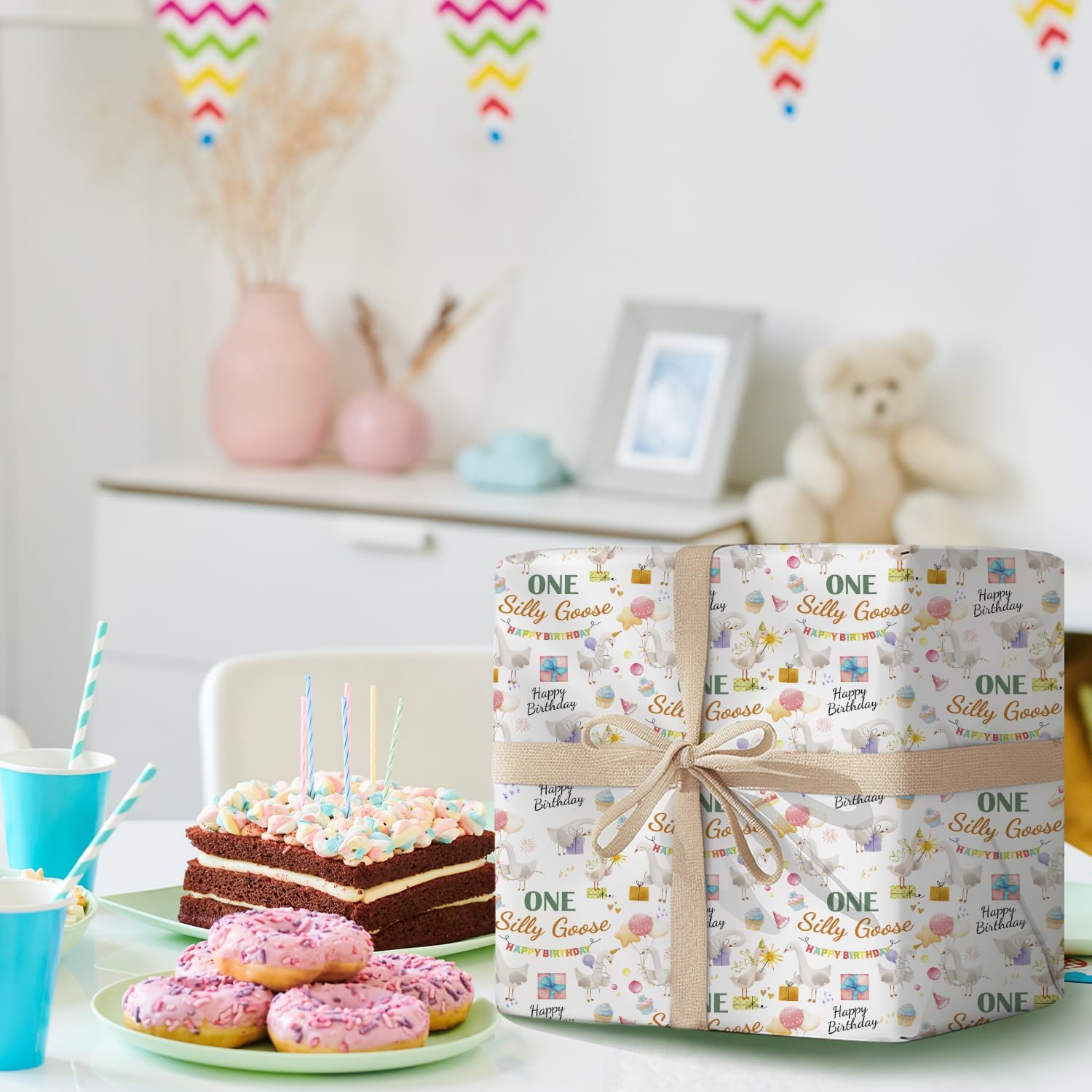 - Perfect for Silly Goose Decor & Parties:This wrapping paper is the perfect choice for a One Silly Goose themed 1st birthday, baby showers, and is a must-have for any little girl's birthday party supplies.