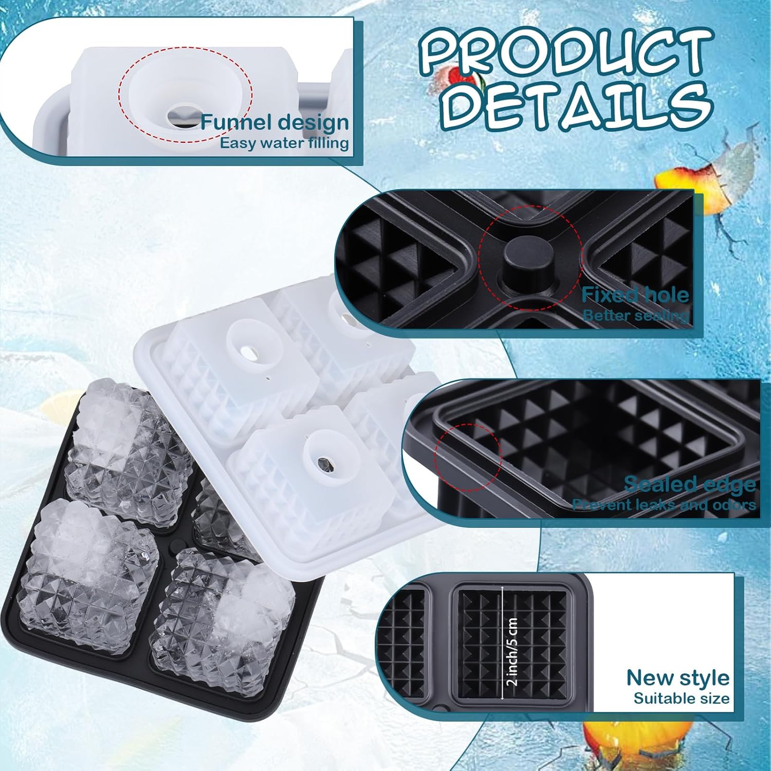 - Large 2 Inch Square Ice Cube Molds: you'll receive 2 pcs square crystal whiskey ice cube molds, each capable of creating four 2-inch big square ice cubes. Add water, soda, juice, tea, or vanilla and freeze to elevate your drinks to new heights. This square crystal whiskey ice cube tray can also be used as a making tool for chocolate, ice cream, or soap
