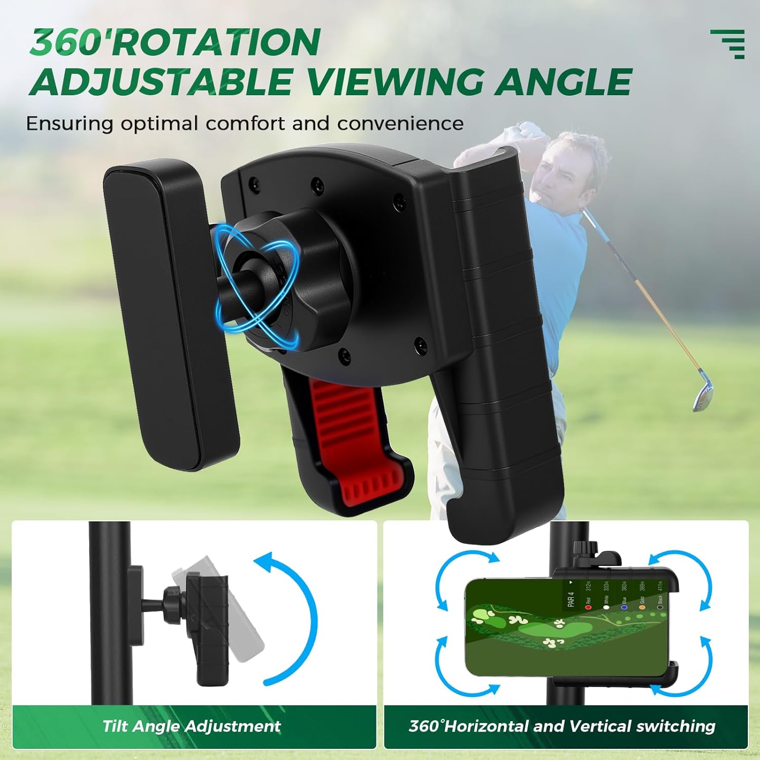 - Secure Lock Mechanism】The one-click locking and quick-release mechanism ensures your phone stays securely in place after adjustment, effectively preventing drops. It allows for easy sliding to access your phone for simultaneous GPS viewing and swinging. An essential golf cart accessory for men and women.