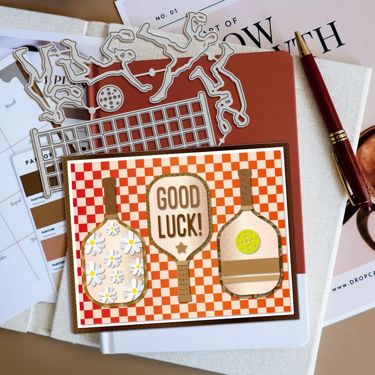 - Packaging Includes: The package includes 2set/23pcs pickleball sports cutting dies, the metal die cuts include various patterns of pickleball, "Best Wishes", "Good Luck", men lady athletes, ball nets, sport racket, etc.