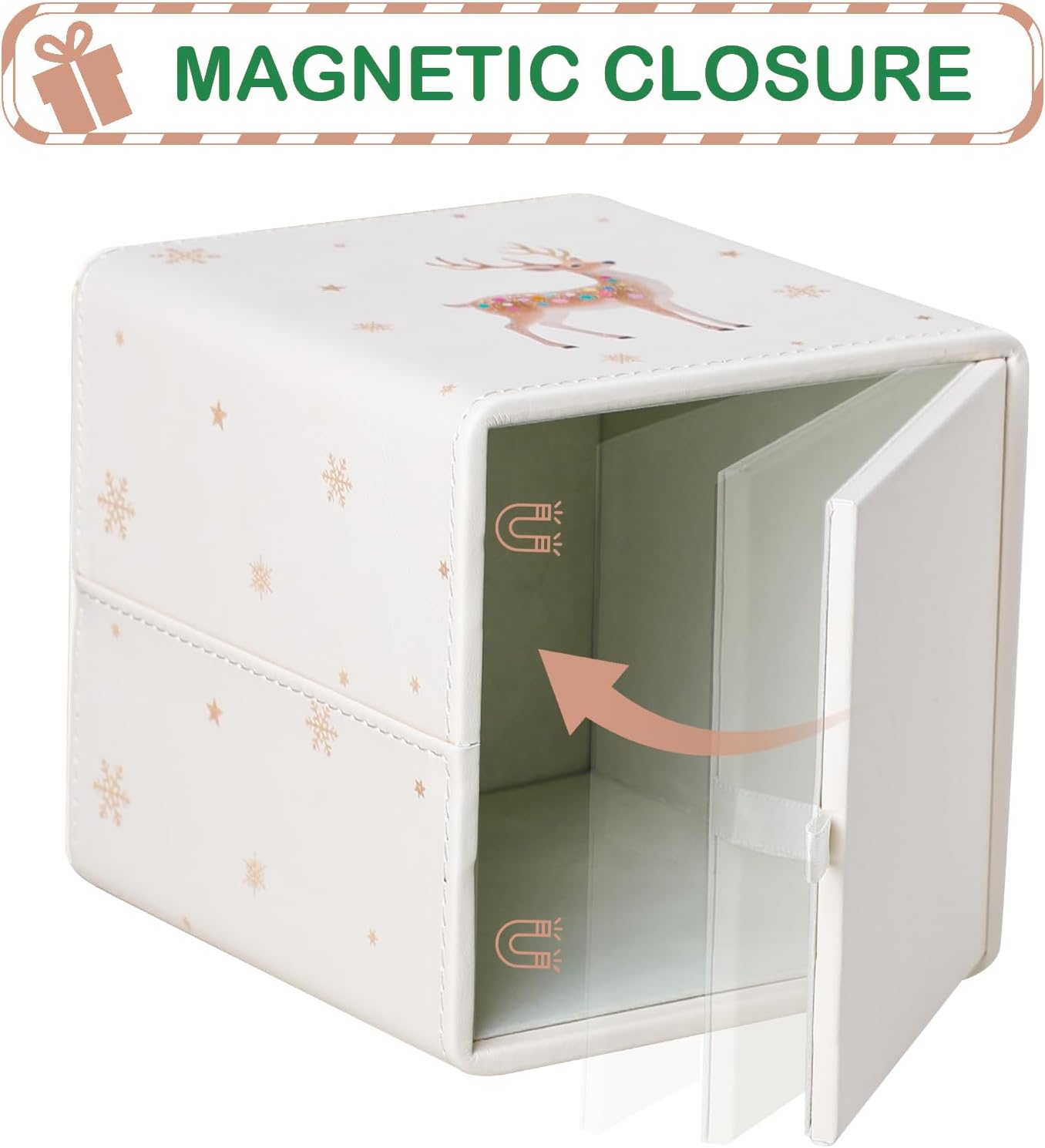 Christmas Tissue Box Cover Square, PU Leather Tissue Box Holder with Magnetic Closure for Bathroom Livingroom Bedroom, Christmas Decorations Cube Tissue Holder (Reindeer)
