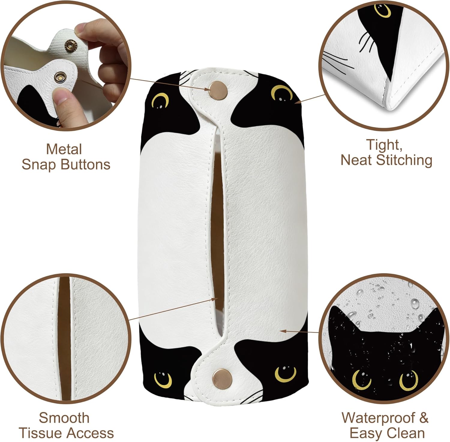 Black Cat Tissue Box Cover Holder – Rectangular Tissue Organizer, Decorative Napkin Box Case for Home, Office & Car