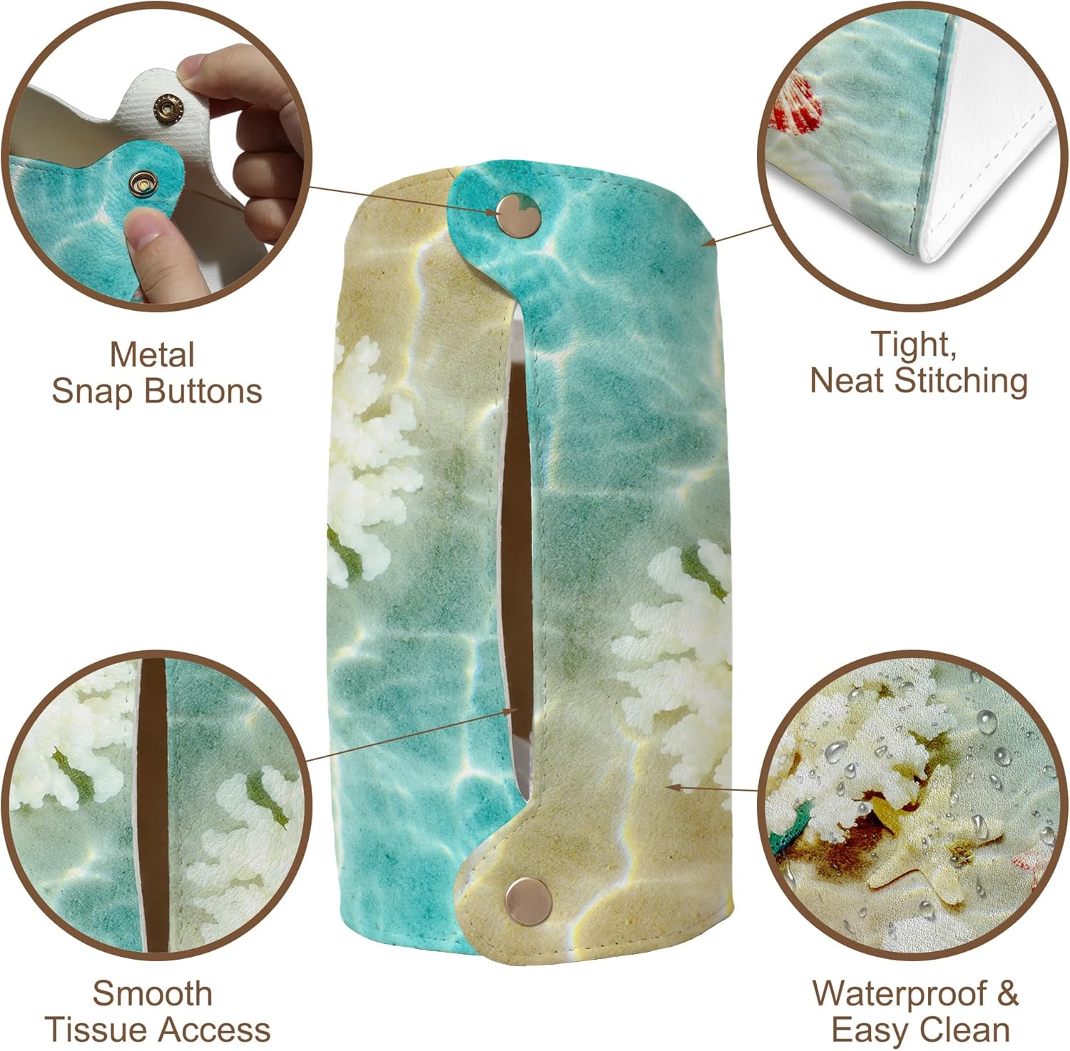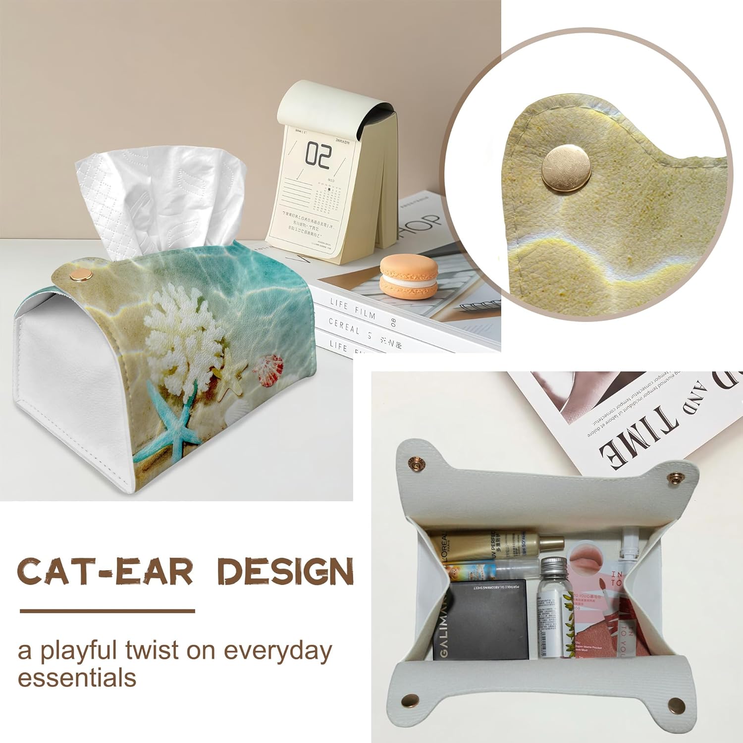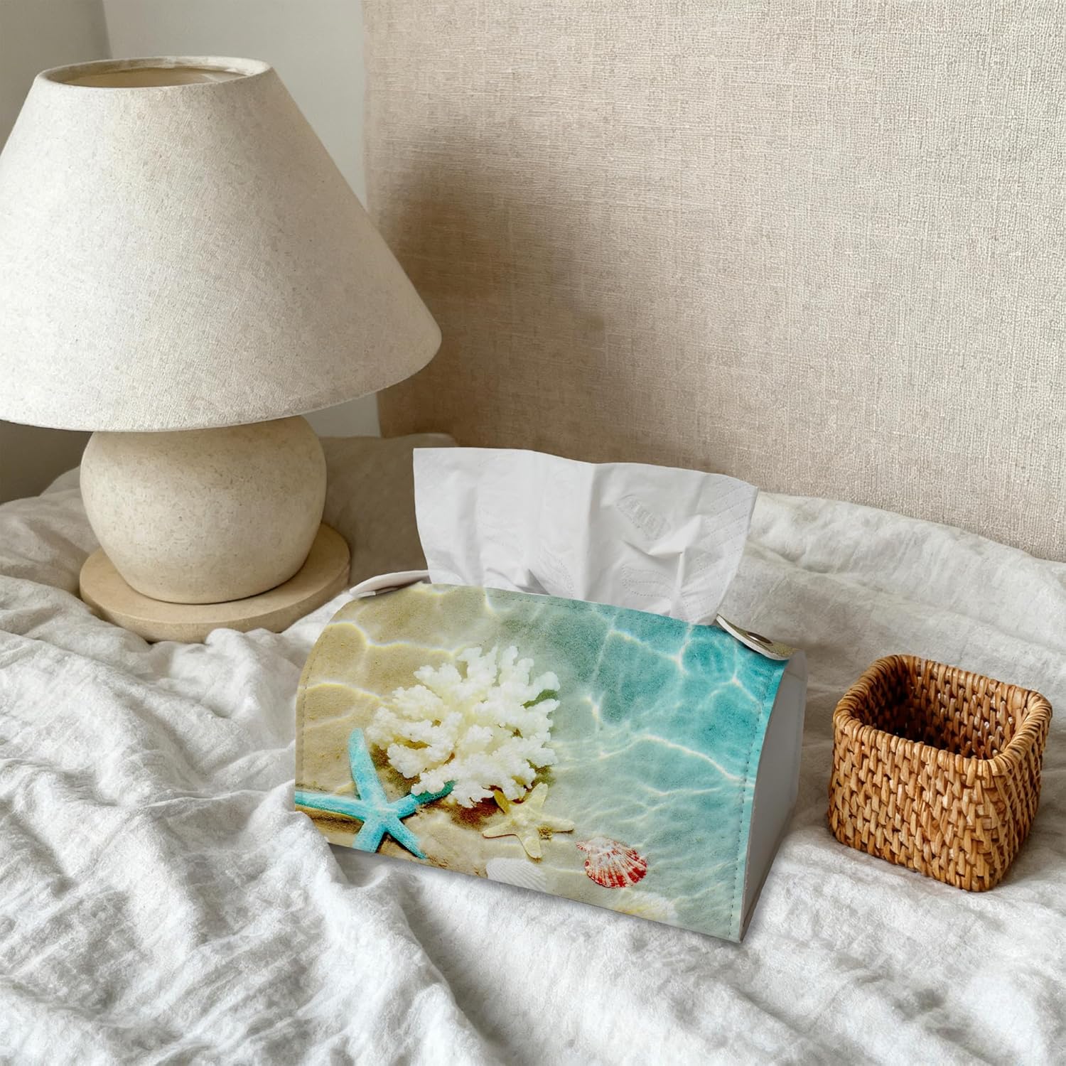 Summer Beach Starfish Seashell Tissue Box Cover Holder – Rectangular Tissue Organizer, Decorative Napkin Box Case for Home, Office & Car