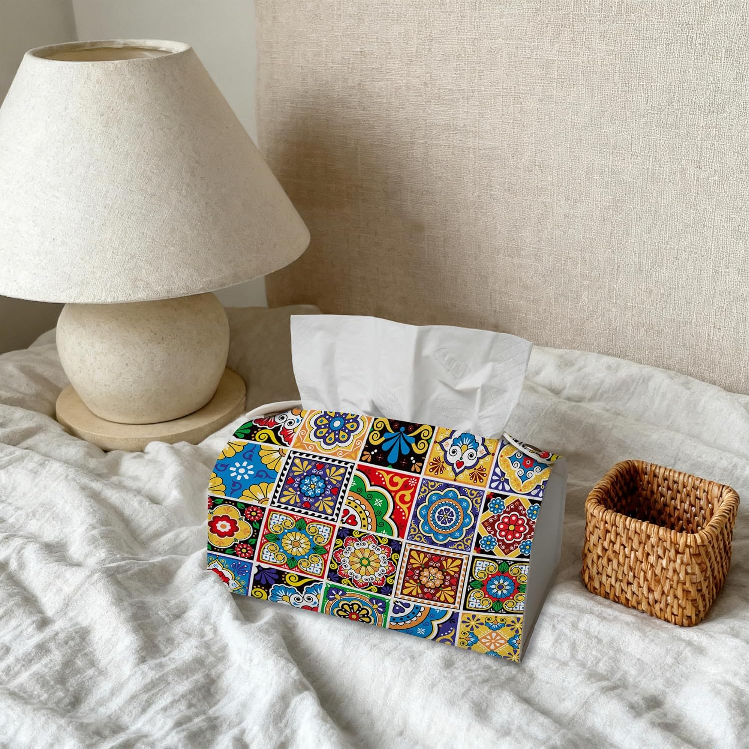 Talavera Mexican Tiles Tissue Box Cover Holder – Rectangular Tissue Organizer, Decorative Napkin Box Case for Home, Office & Car