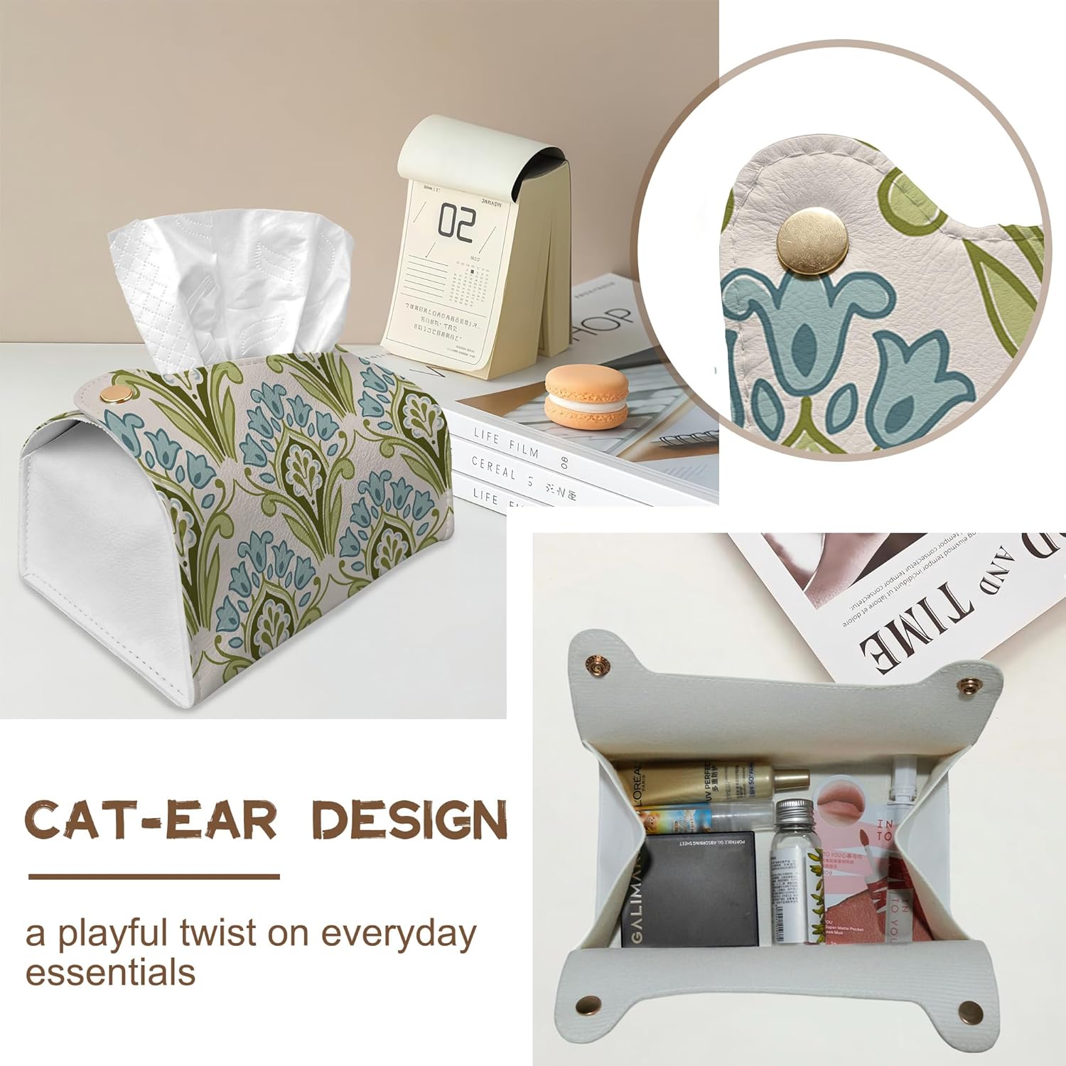 - Playful Cat-Ear Design – Stylish & Fun: The charming cat-ear shape adds a cute, eye-catching accent that complements any interior—coffee table, nightstand, office desk, or car console