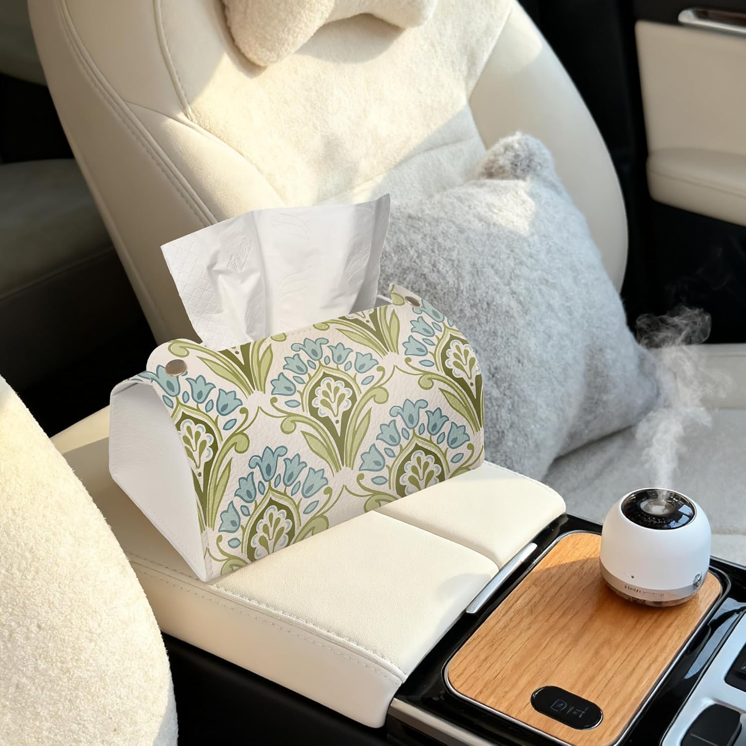 Green and Blue Floral Tissue Box Cover Holder – Rectangular Tissue Organizer, Decorative Napkin Box Case for Home, Office & Car