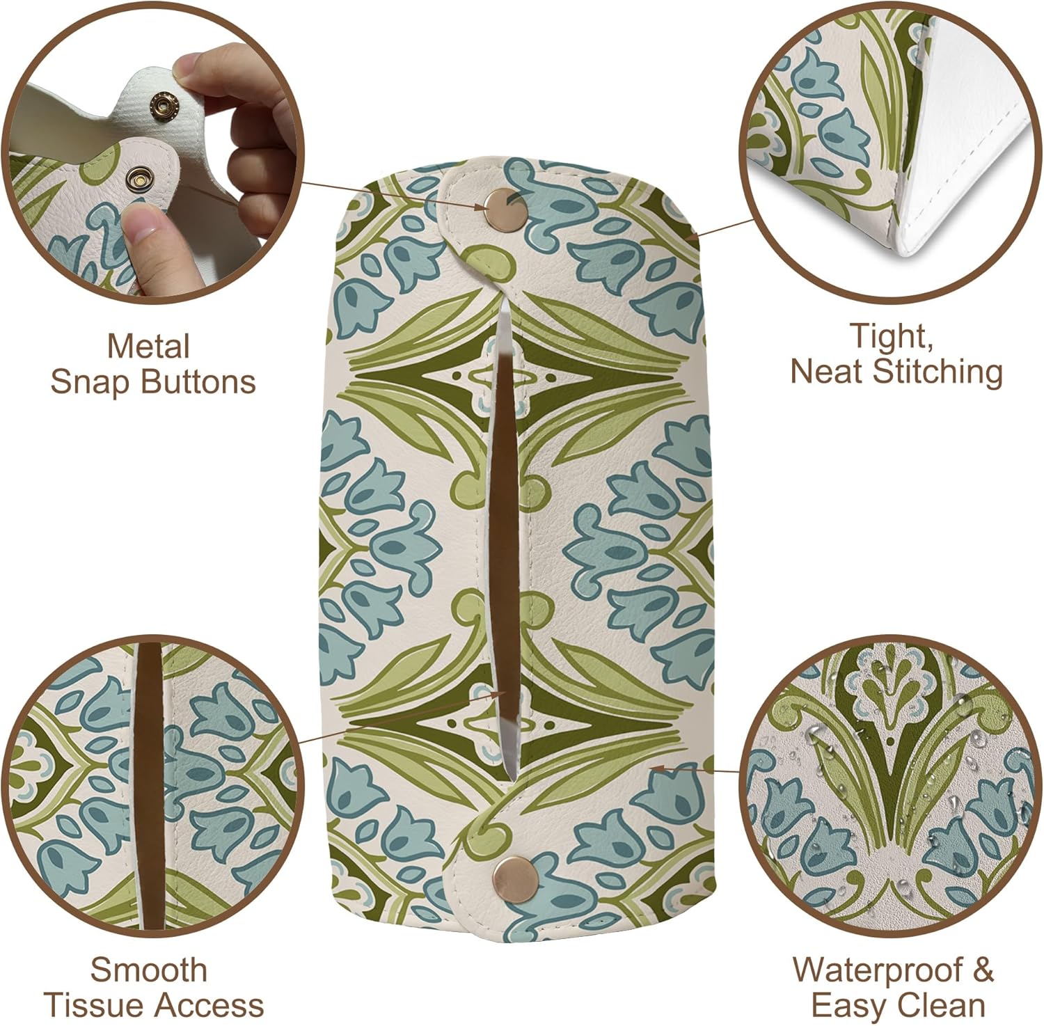 - Unique Button Design – Easy to Open & Securely Close: Features snap buttons on both sides for quick access to tissues while keeping the cover securely in place. No more loose or exposed tissue packs—simple, clean, and convenient