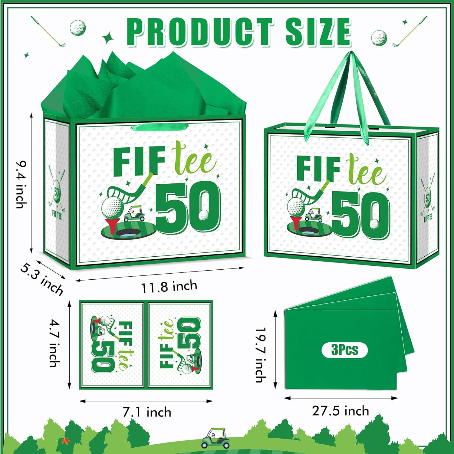 - Package List : You will receive 1pc 50th golf gift bag, 1pc golf greeting card, and 3pcs tissue paper. The golf fifty birthday gift bag not only has an exquisite design but also is versatile and practical option for men's golf theme birthday party