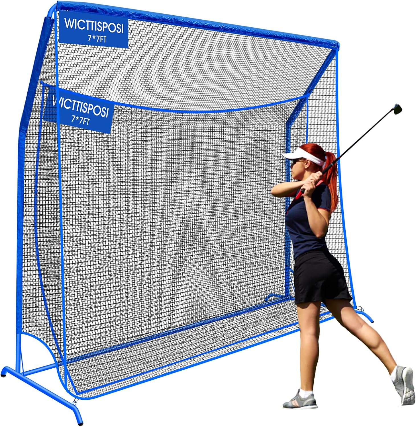 - Full-Angle Interception & Immersive Hitting: No Golf Practice Partner? Tired of errant balls, flimsy gear, or tricky setups? This Golf Hitting Net(7x7 FT) solves it all in one rugged, game-changing design. Cube-shaped net with left/top/right protective net and a central Striking Net(hitting/pitching). Stray balls from missed swings/throws stay contained—no chasing, just focused practice