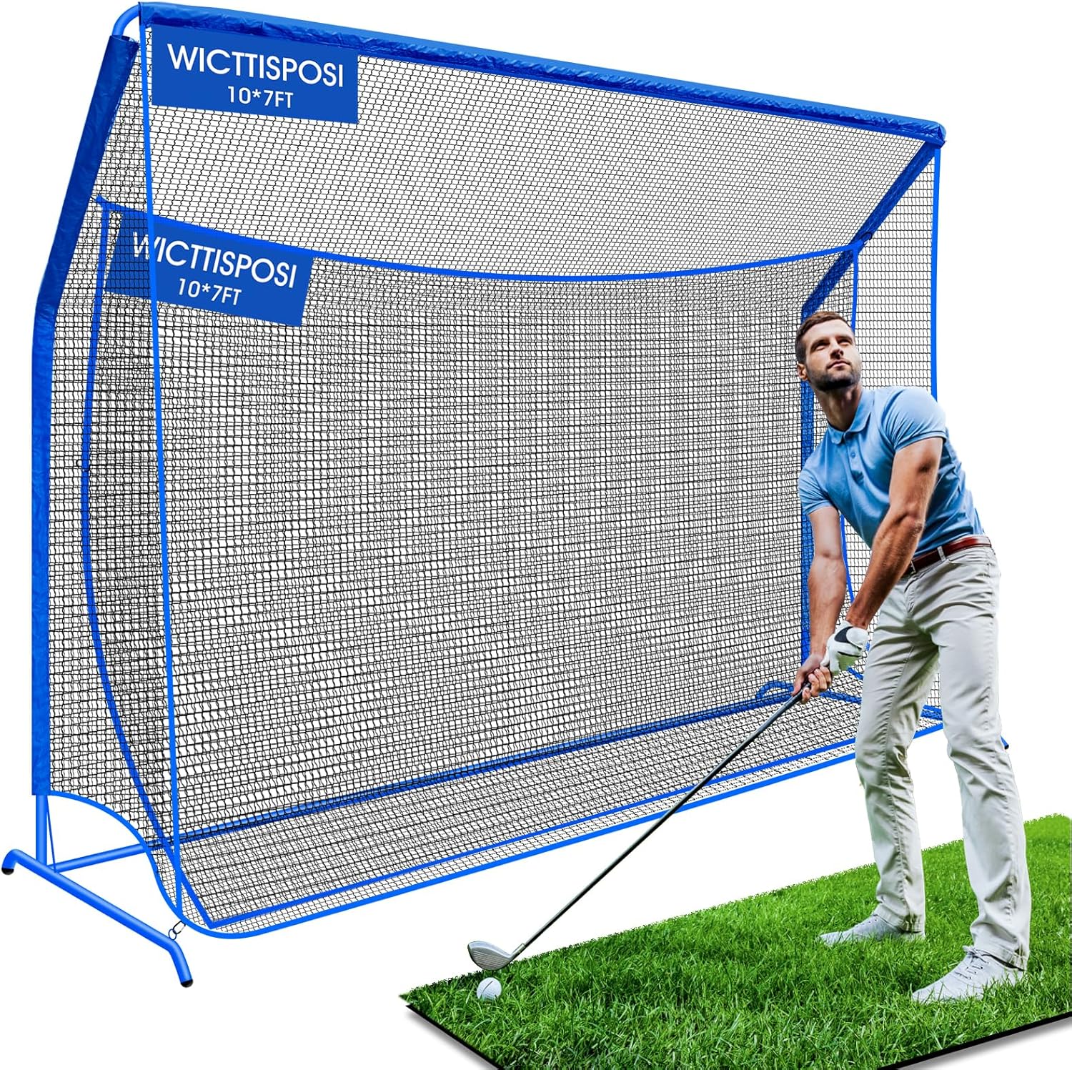Golf Hitting Net with Extra Striking Net, 10x7ft/7x7ft Heavy Duty Golf Practice Nets for Golfers Backyard Driving Swing, Golf Impact Cage Metal Frame with Storage Bag&Elevated Base, Indoor Outdoor Use