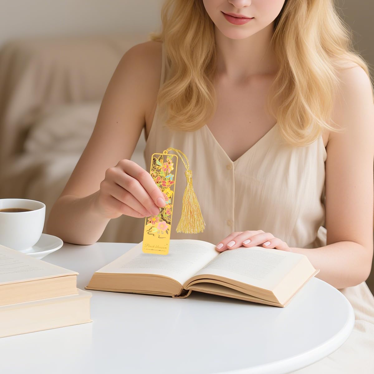 - Artistic Design: This metal bookmark features an exquisite floral pattern, inspired by hollyhock, camellia & peach blossom, adding elegance to your reading experience