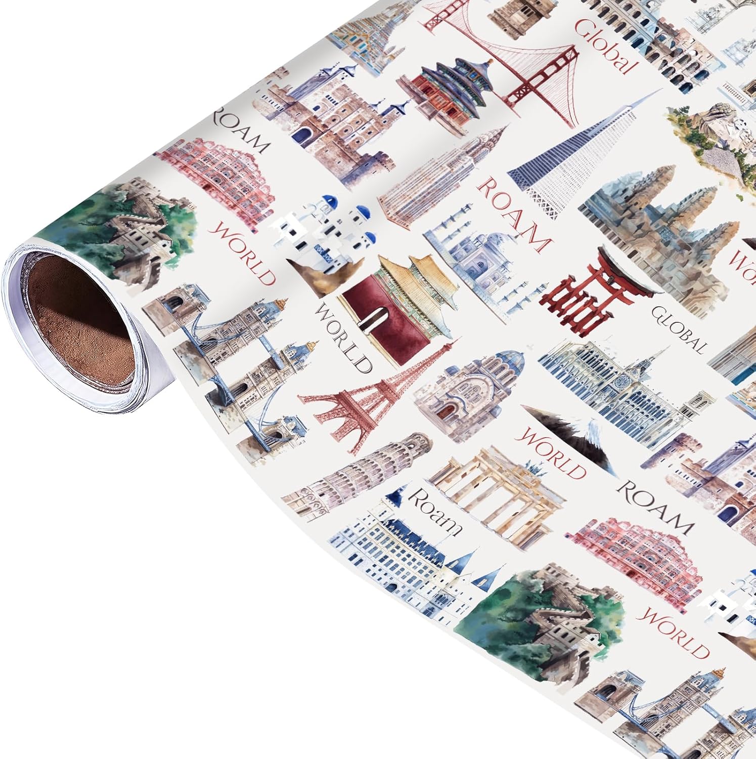 - SIZE & QUANTITY:You will get 1 roll of watercolor world landmark wrapping paper.This roll measures 17Inch x16.4Feet (43 x 500 cm),providing ample length to wrap multiple gifts.The generous dimensions ensure full coverage for medium to large boxes,making it a practical and cost-effective choice for all your gift-wrapping needs.Each roll is crafted to deliver consistent quality and durability.