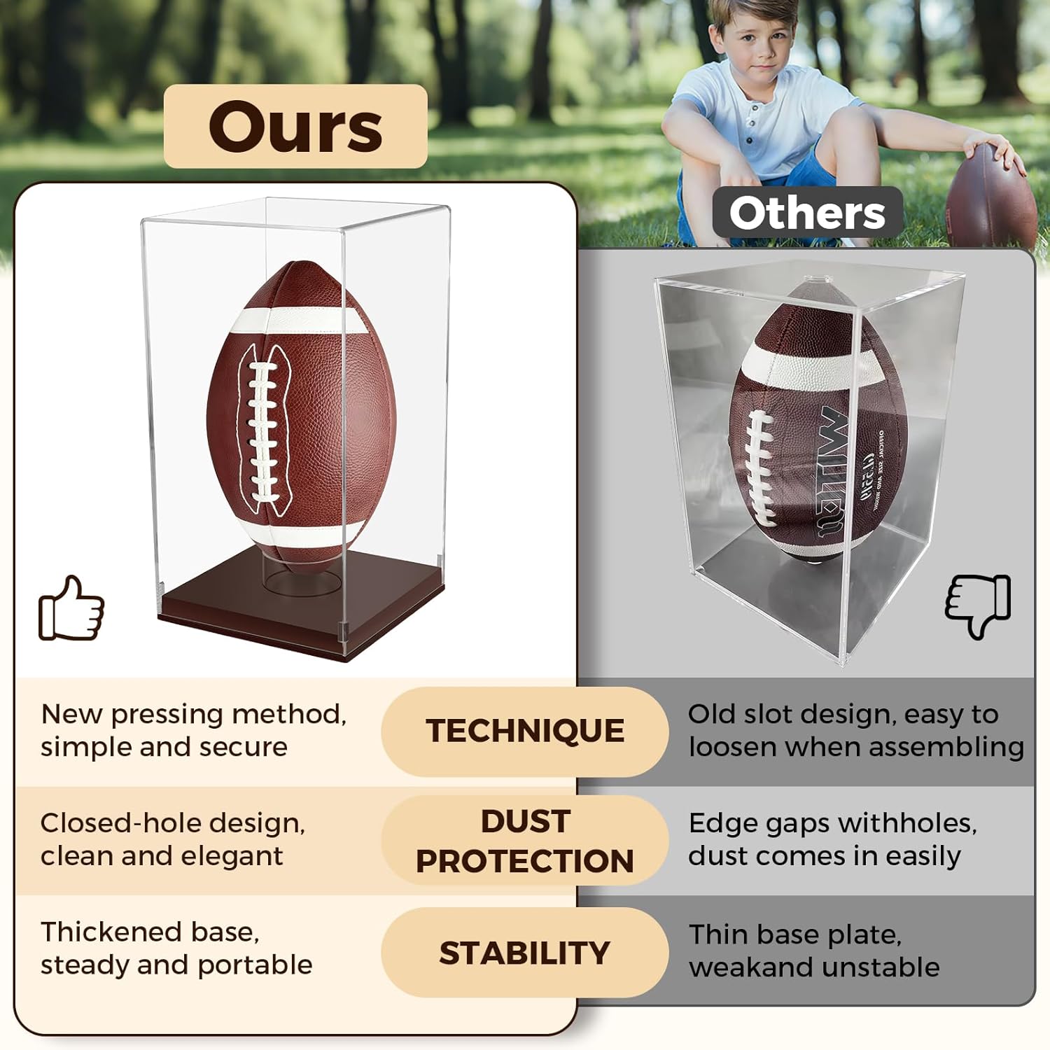 - Dustproof & Protective Construction: Keep your valuable collectibles safe from dust, fingerprints, and accidental damage. The sealed acrylic cover sits firmly on the base to protect your football while maintaining a clear, polished look.