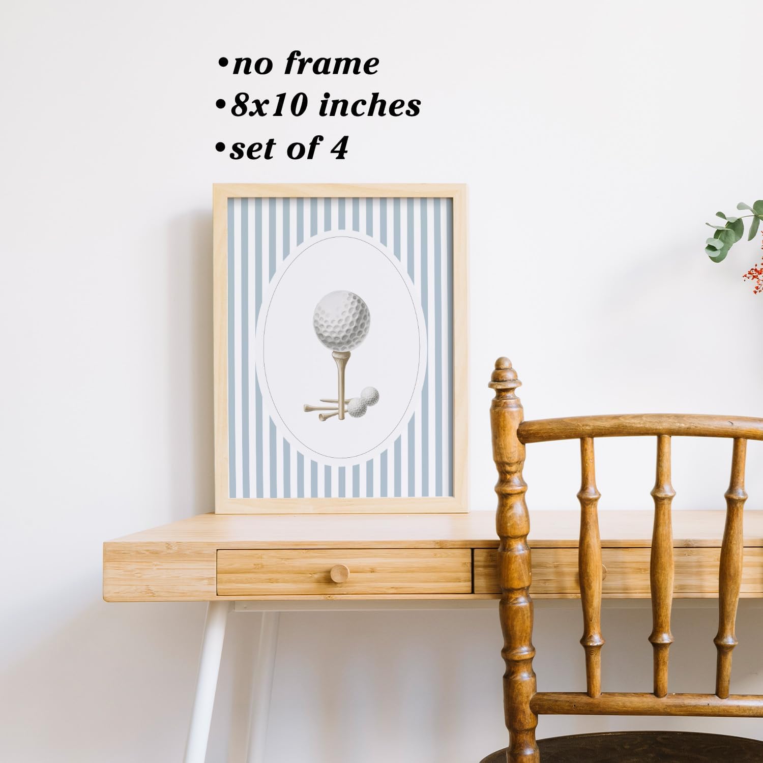 Boat Wades Blue Striped Golf Wall Art Prints Set of 4, Golfer Gifts for Women Men, Trendy Golf Cart Club Course Posters Pictures Wall Decor for Home Bedroom Living Room Office, 8x10 Unframed