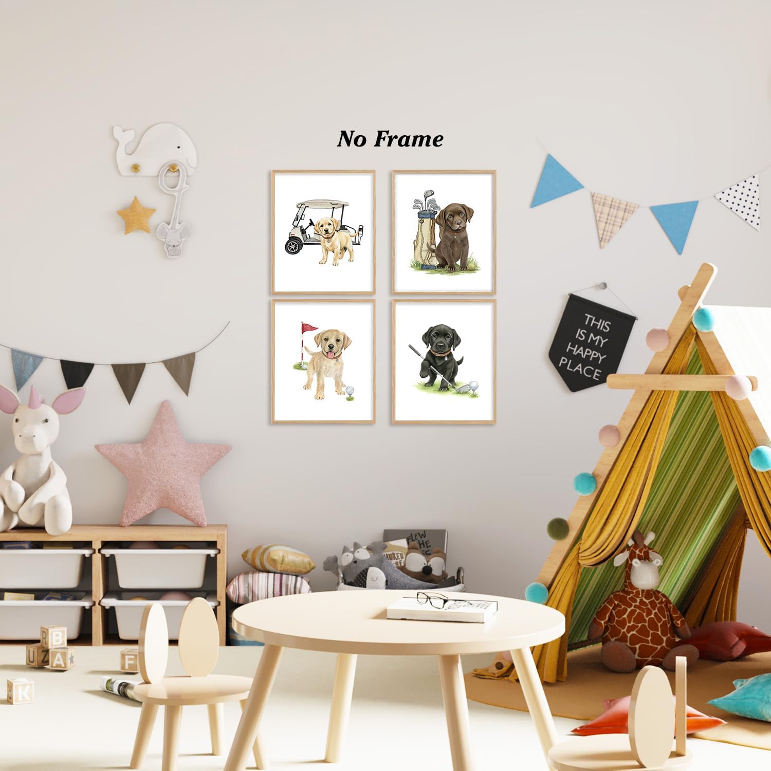 Boat Wades Labrador Retriever Puppy Golf Wall Art Prints Set of 4, Gifts for Labrador Dog Lovers, Funny Lab Dog Golfer Posters Pictures Wall Decor for Home Office Kids Nursery, 8x10 Unframed