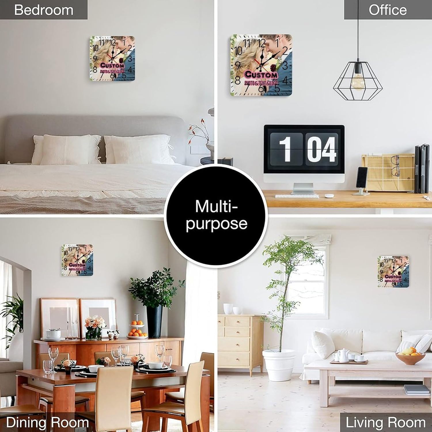 Custom Woodiness Wall Clocks,Personalized add Your Photo/Text,Customizable Silent Square Decoration for Kitchen Bathroom 10inch style6