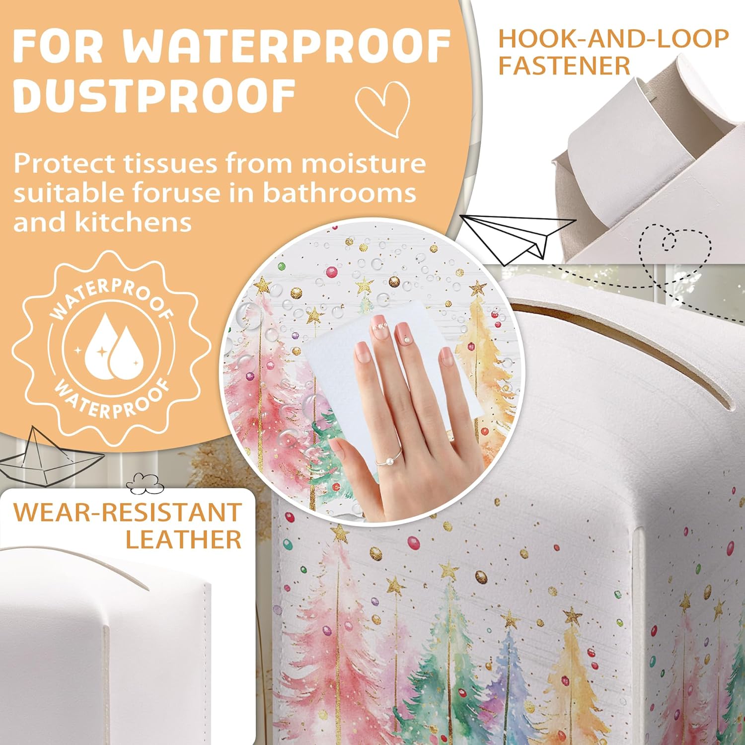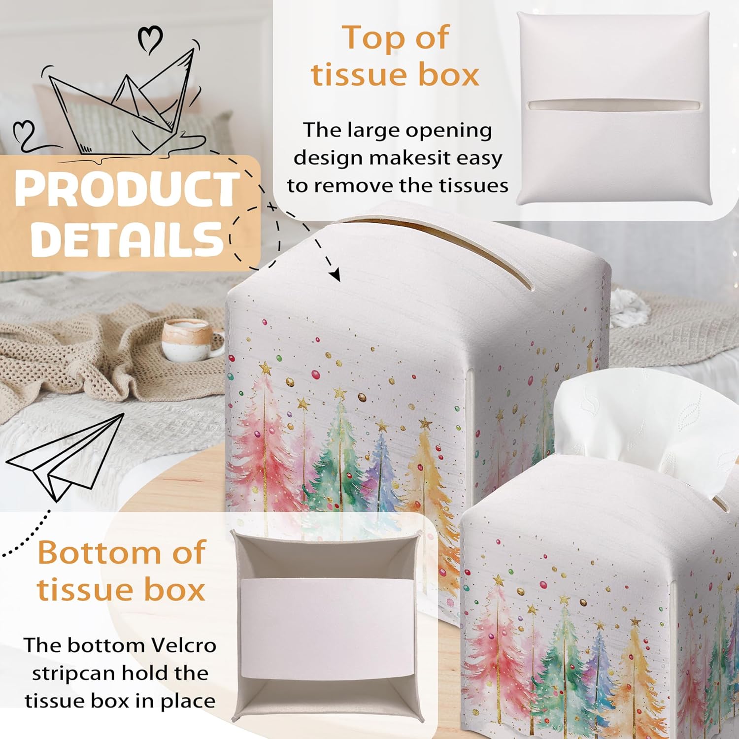 Women Tissue Box Holder, Colorful Christmas Tree Leather Tissue Box Cover Square, Paper Facial Decorative Tissues Cover for Night Stands Bathroom Kitchen Office Home Decor-B19