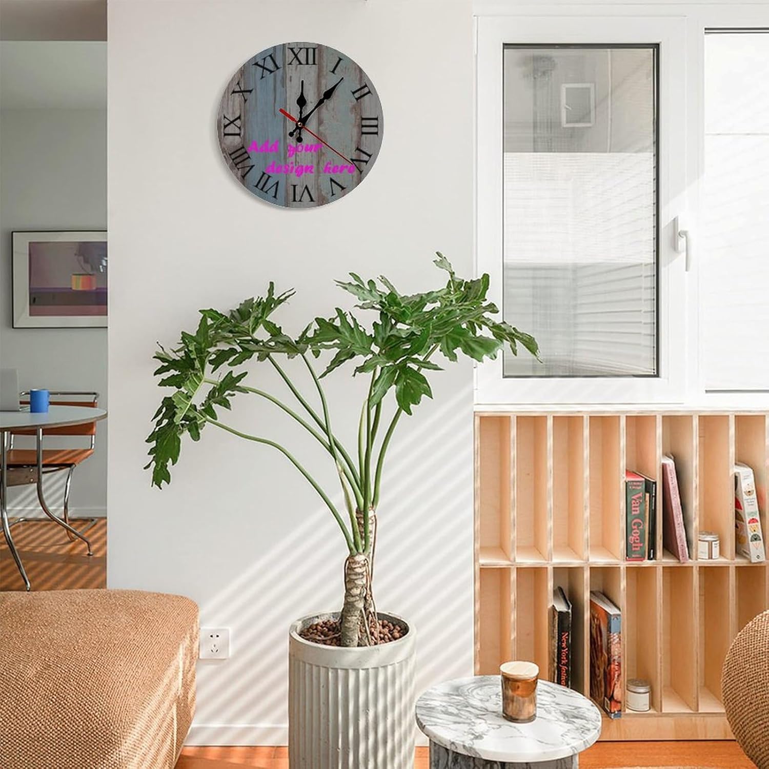 Custom Wall Clock,Personalized Wood Clock add Your Photo/Text,Customizable Silent Round Decoration for Kitchen Bathroom 13.4inch style5