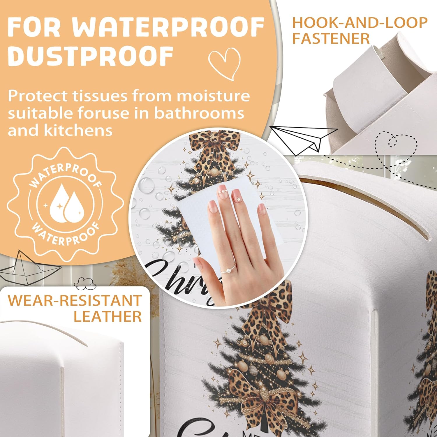 - Easy to Replace: Our Christmas Tissue Box Holder features a secure belt with an open bottom design, allowing for quick and effortless tissue replacement. The wide opening provides easy access to tissues, making it a practical choice for any environment