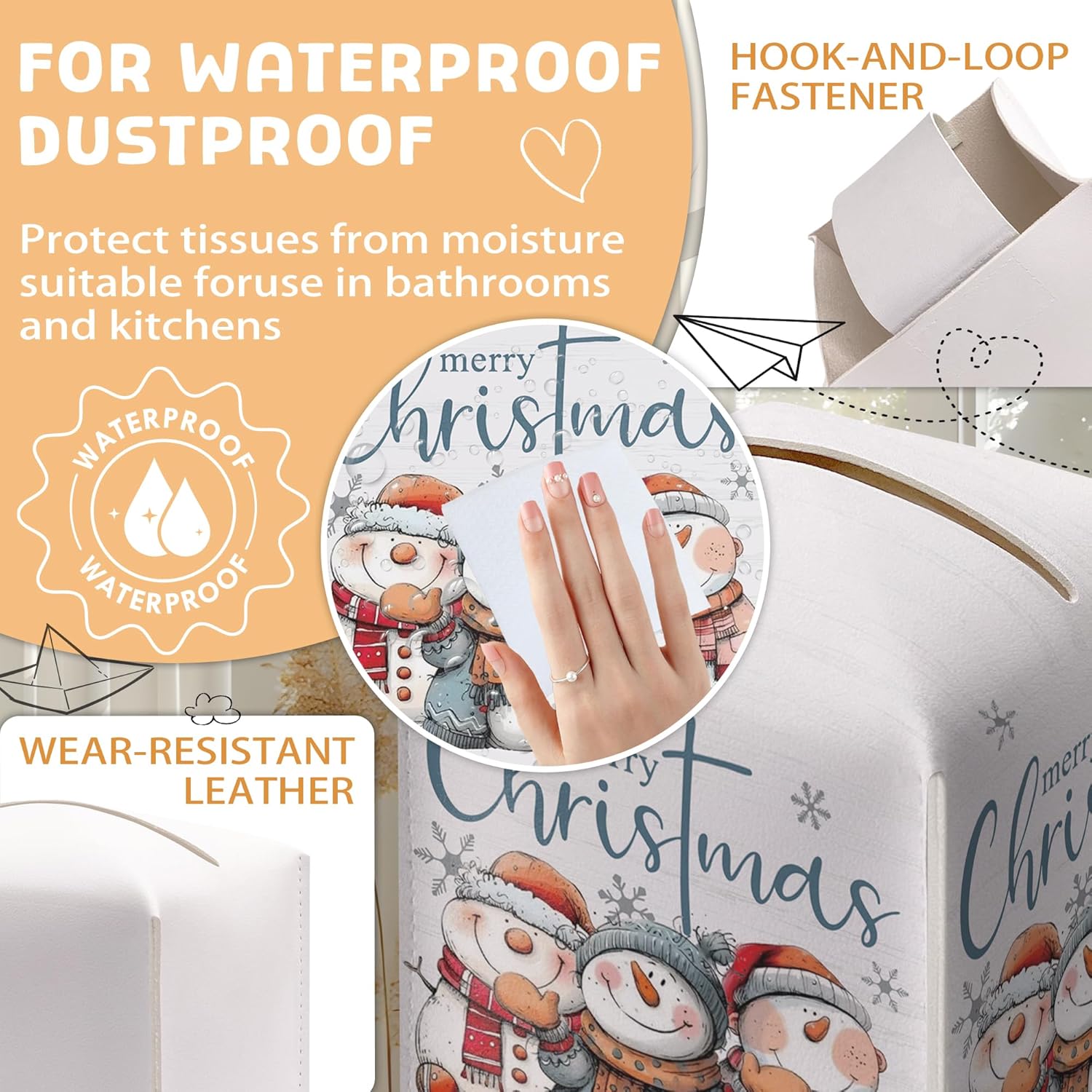 Christmas Snowman Tissue Box Holder, Cute Snowman Family Christmas Leather Tissue Box Cover Square, Paper Facial Decorative Tissues Cover for Night Stands Bathroom Office Home Decor-B03