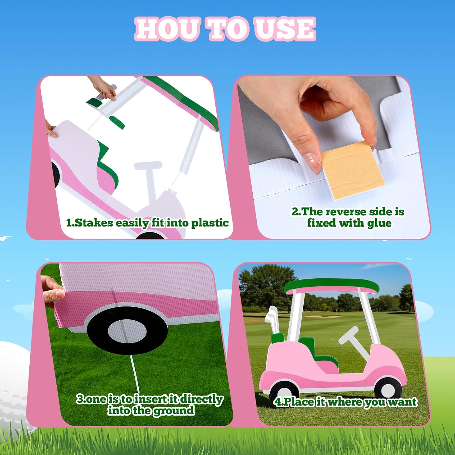 - Creative Design: as golf cart photo props, this cutout offers an enjoyable interactive experience for guests, helping capture unforgettable moments; It can be applied as a photo wall, booth background, or DIY decoration in spaces like living rooms, bedrooms, offices, or bars; The playful pink and green color scheme adds a lively vibe, making it suitable for baby showers, first birthdays, or gender reveal parties, allowing everyone to enjoy photography