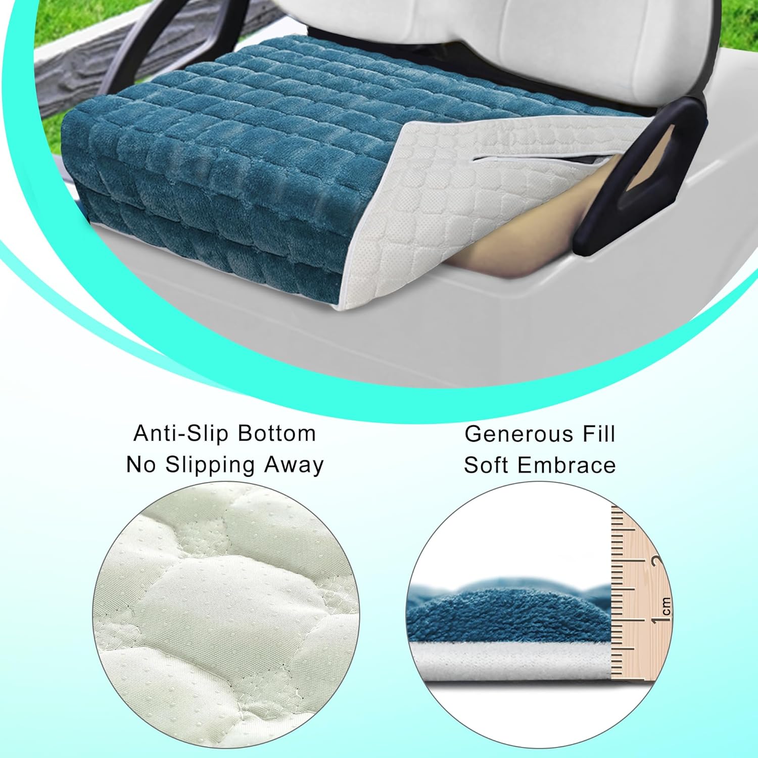 - 【Plush Material】This golf cart seat cover features a plush, velvety-soft surface and silk cotton filling for warmth. Non-slip backing keeps it securely in place.