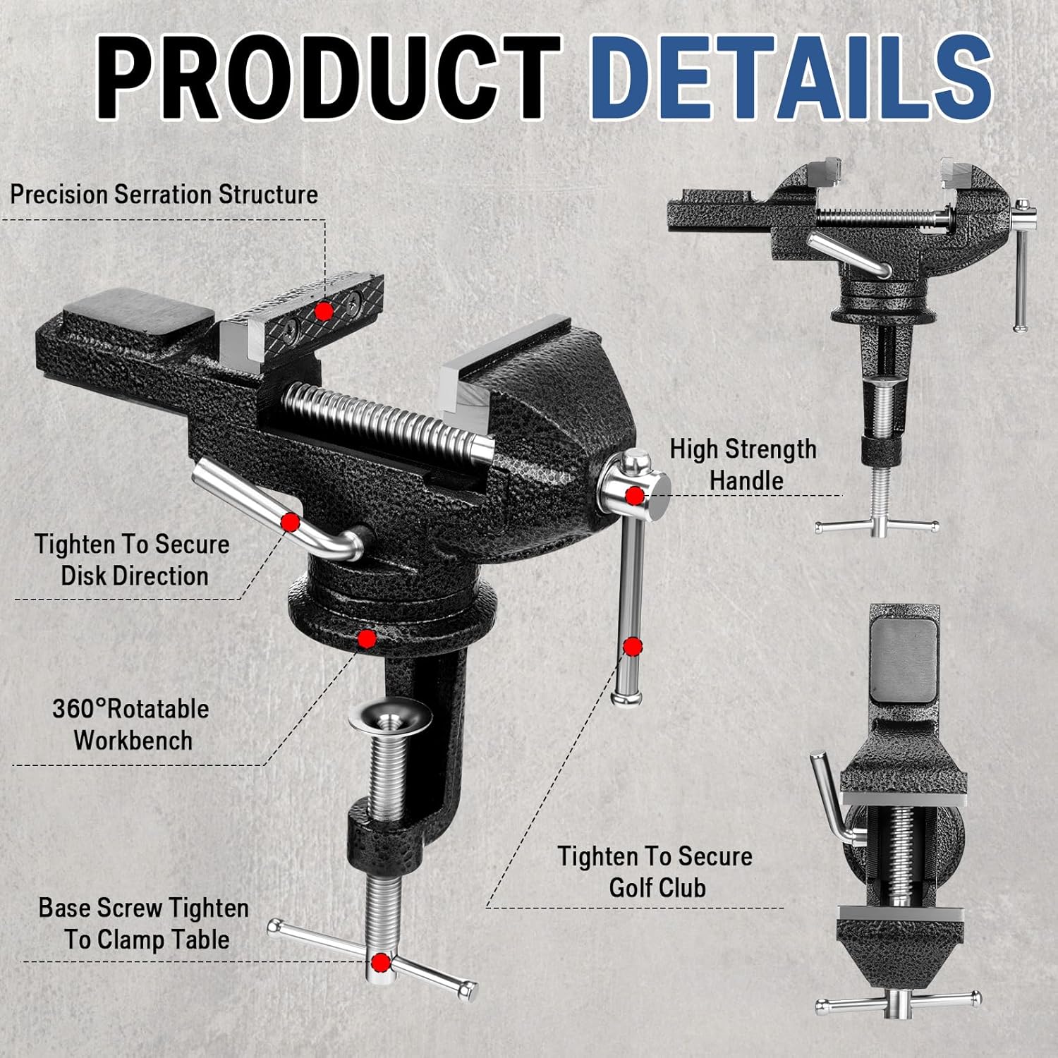 - Enhanced Grip with Rubber Vise Clamp: our innovative rubber vise clamp is designed to securely hold your golf club without damaging it, unlike traditional clamps requiring screws and drilling; Its enhanced grip and 360° rotation feature allows for easy angle adjustments and stable re-clamping; Whether you're repairing or replacing grips, this design ensures seamless and safe handling, allowing precise alignment every time you work on your golf club