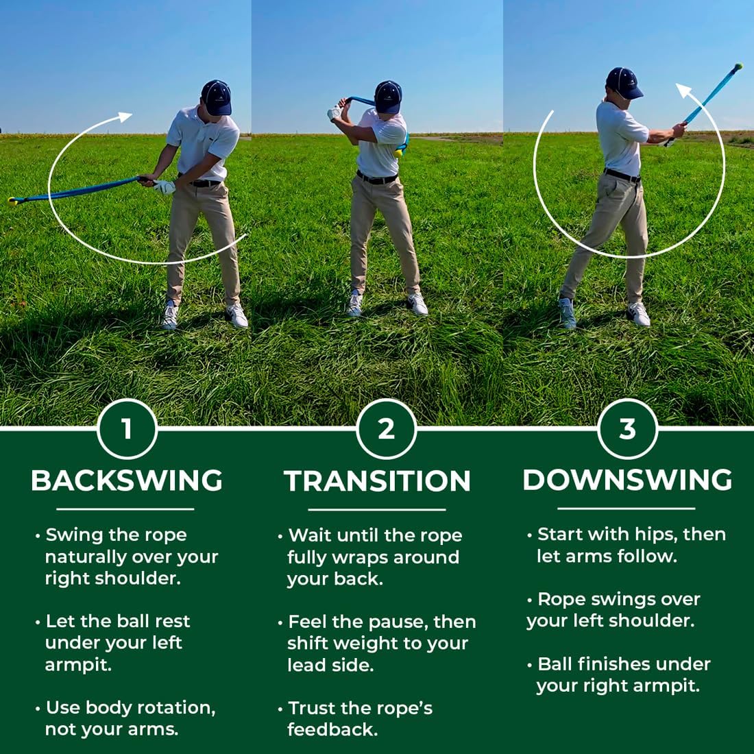 - Improve tempo, rhythm & speed with our golf practice equipment - Achieve better timing and fluidity in your swing. The yellow foam ball on the rope golf swing trainer helps you visualize your swing plane and path, providing a clear reference to refine your movement and build a more efficient, powerful swing.