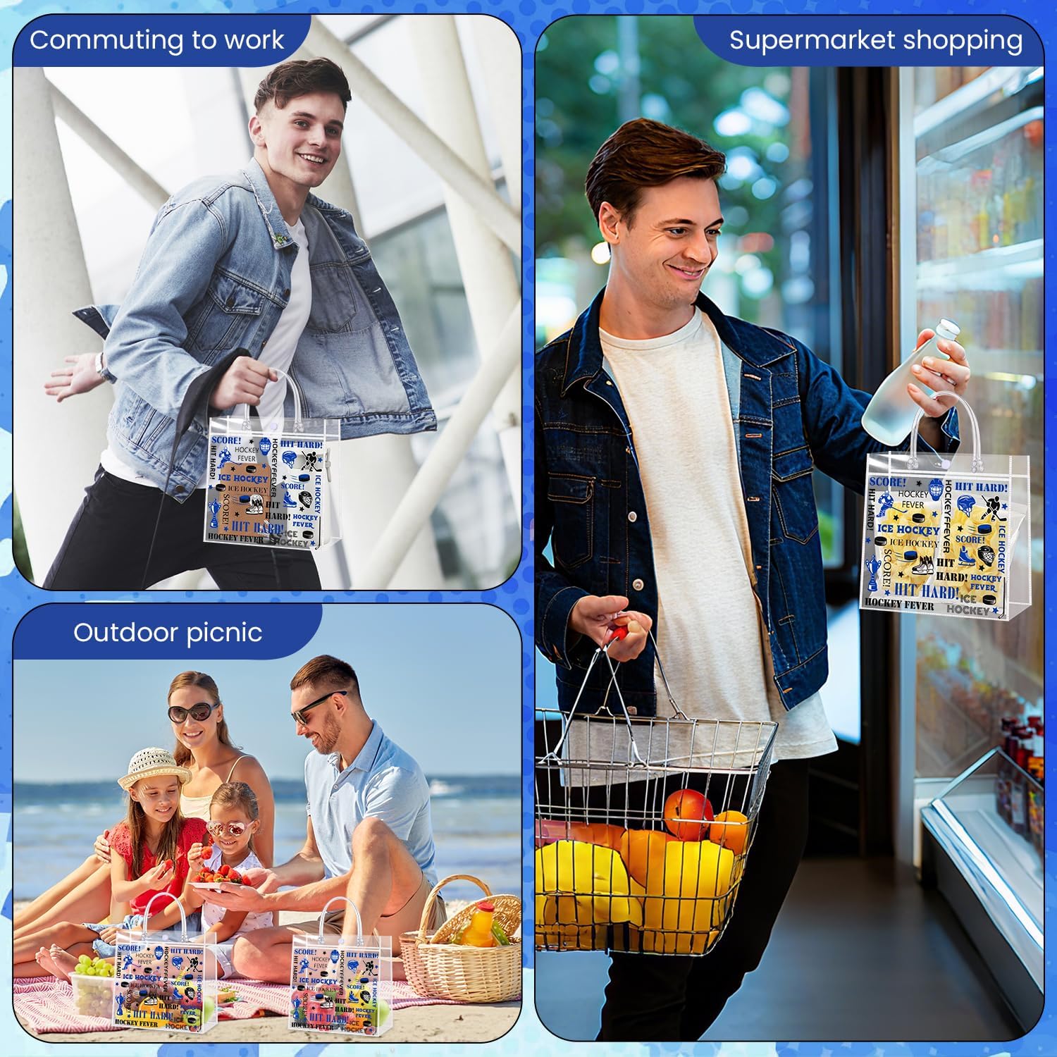 Liobelon 24 Pieces Transparent Ice Hockey Goodie Bags Hockey Clear PVC Gift Bag with Handles 7.9 x 7.9 x 3.1Inch Sport Theme Party Favor Bags for Birthday Holiday Sports Team Game Celebration
