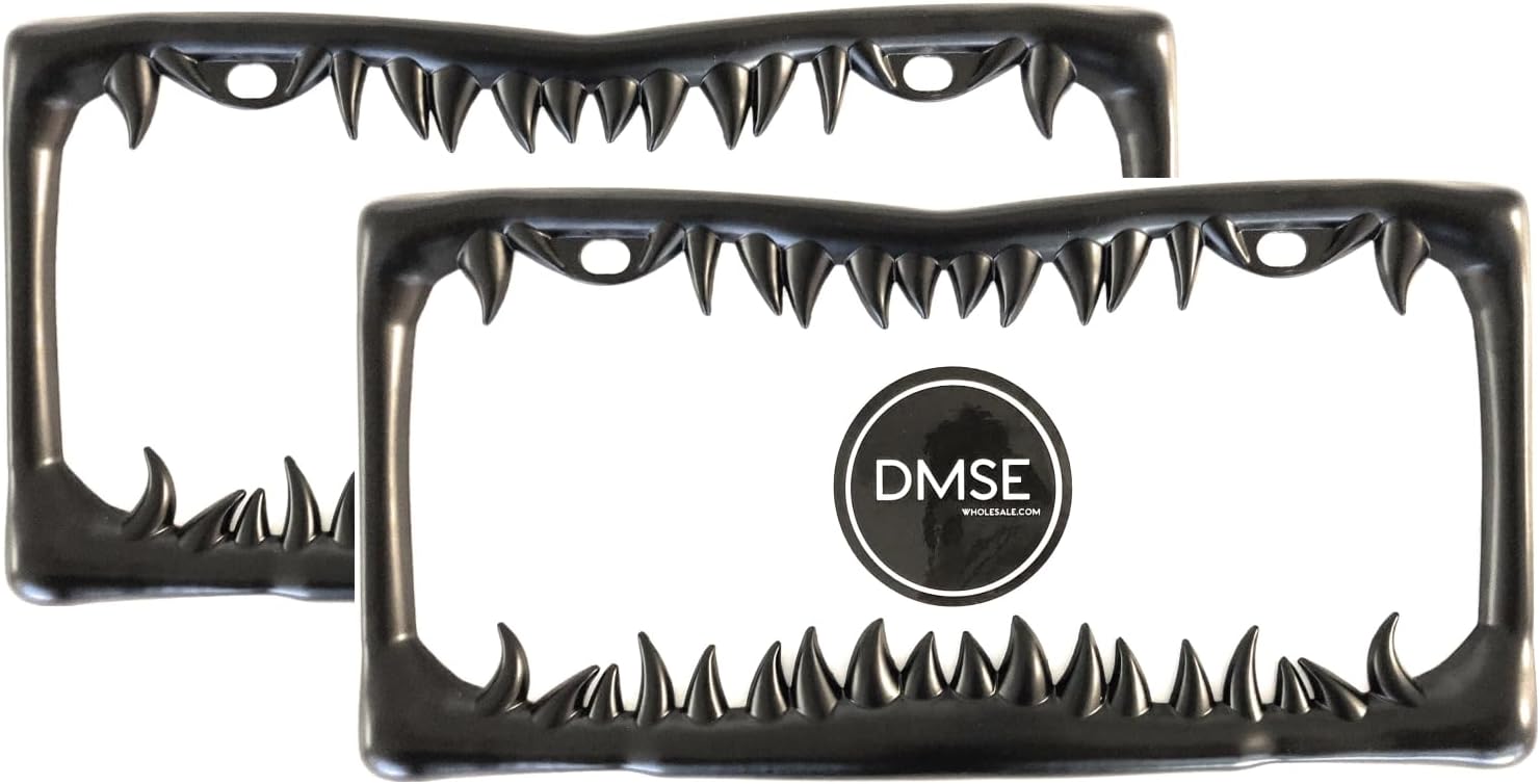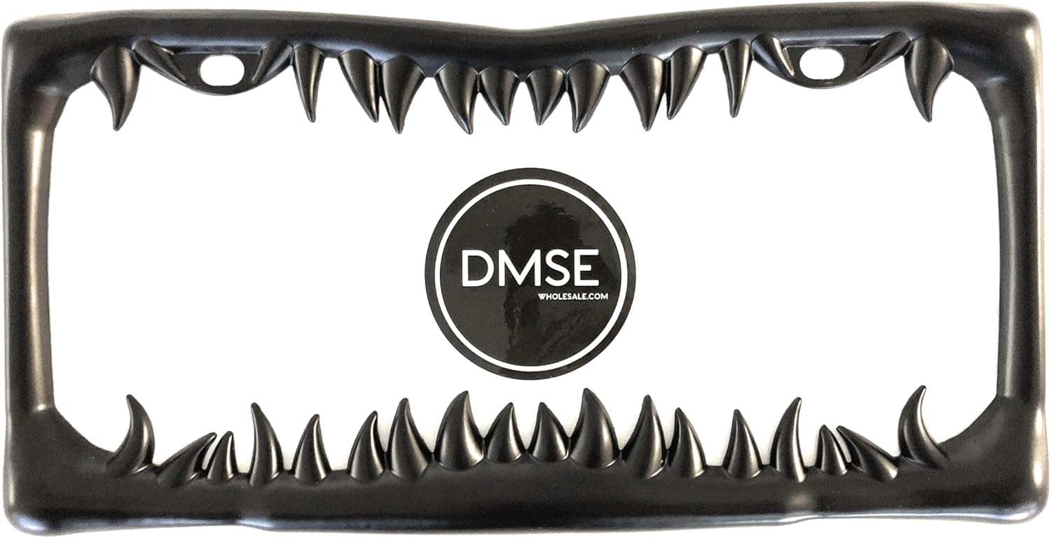 DMSE Jaws License Plate – Shark License Plate Frame Metal Universal 3D Teeth Built for Any Vehicle.