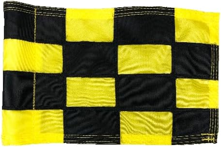 - MULTIPLE COLORS AVAILABLE - Take your golf practice to the next level with our Regulation Pin Flag, available in USA, Red/White Checkered, Yellow/Black Checkered, or 19th Hole designs. Standing at 14" tall by 20" long, this flag complements the regulation flagstick and cup, offering a professional touch to your backyard or practice space. Experience the feel of being on the course while refining your skills at home.
